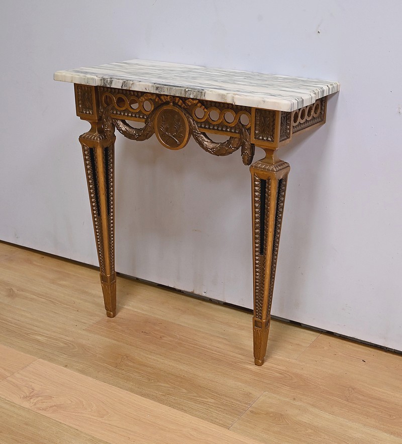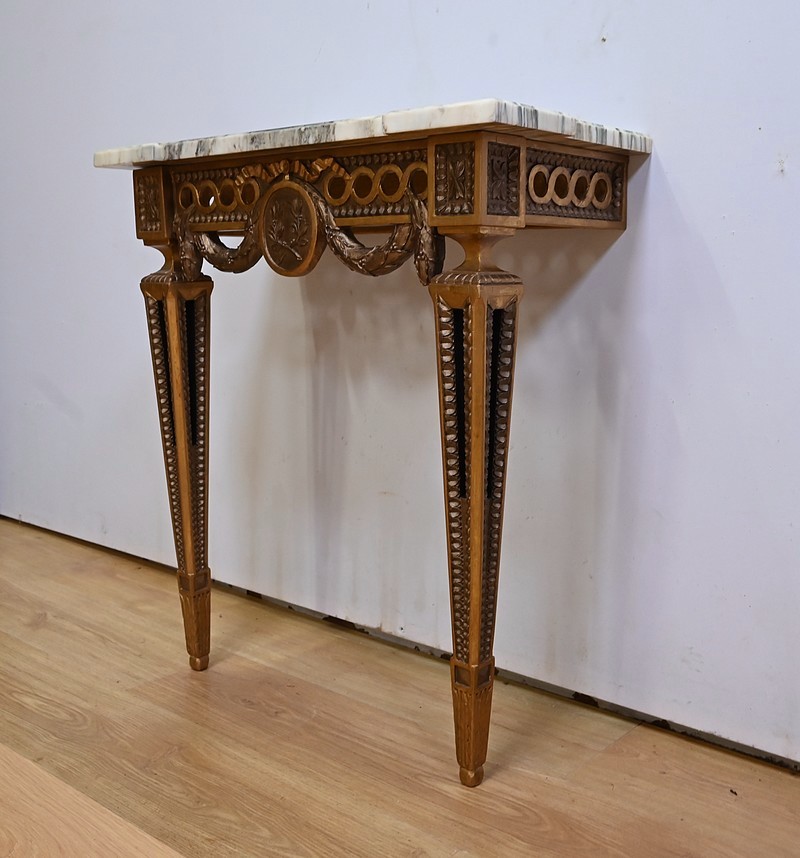 Petite Console d’Applique en Bois Sculpté, style Louis XVI, époque Napoléon III – Milieu XIXe