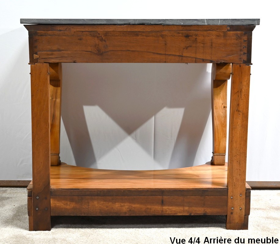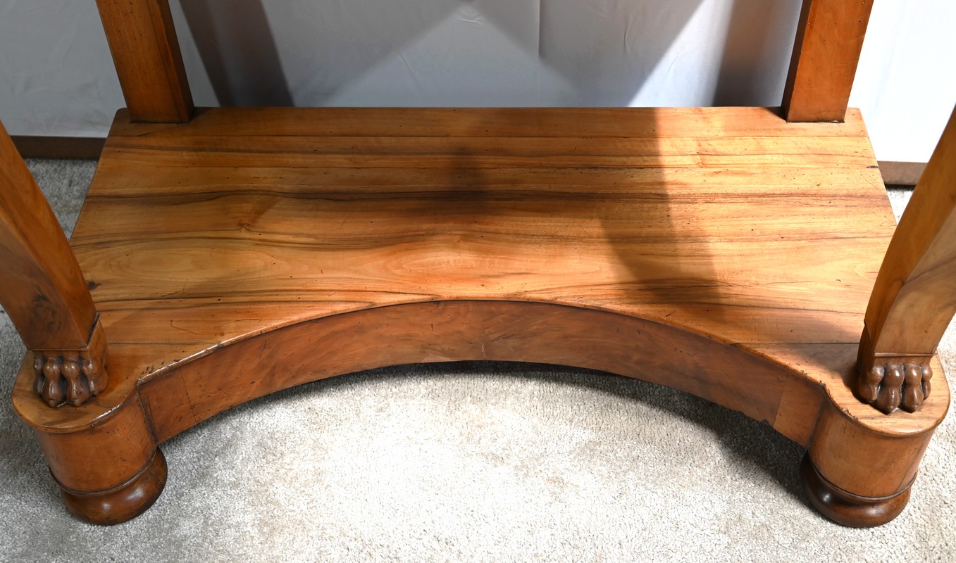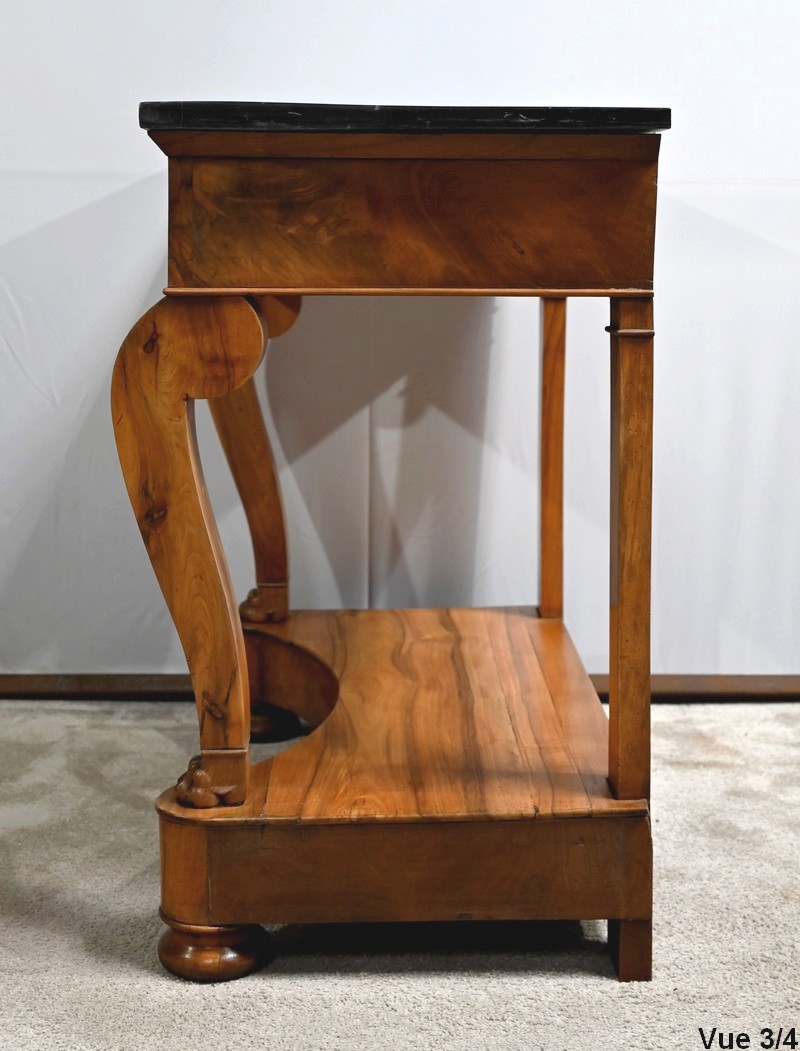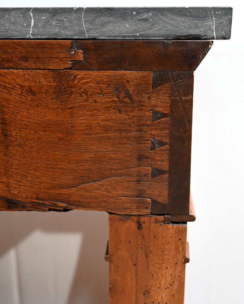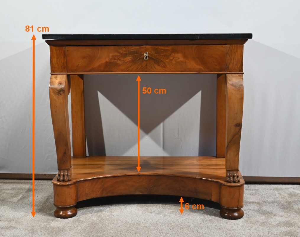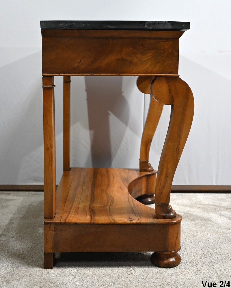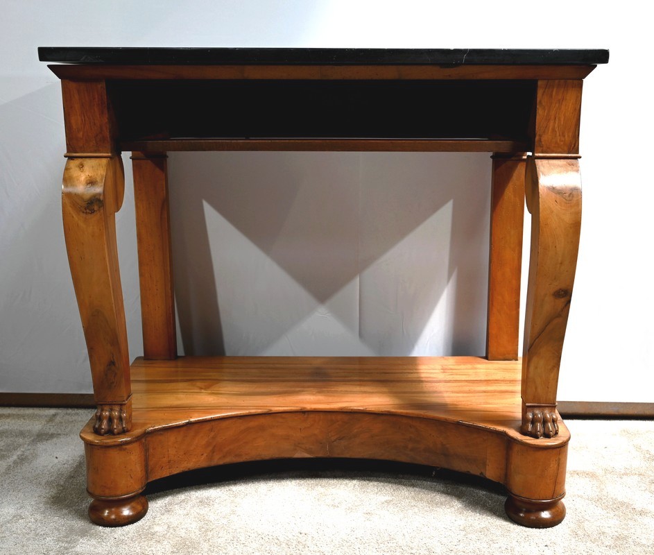 Petite console en noyer blond sommée d’un marbre noir français.