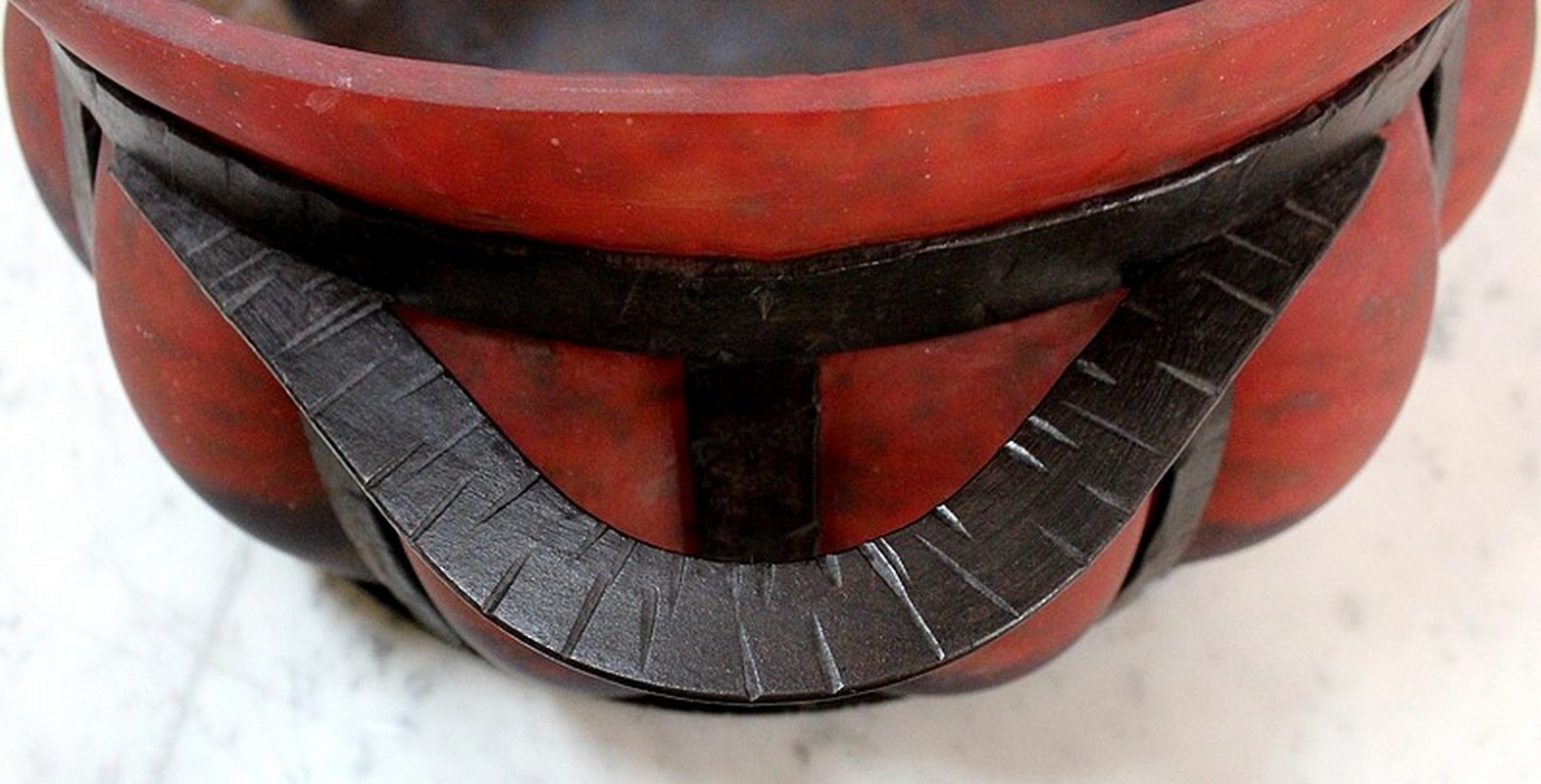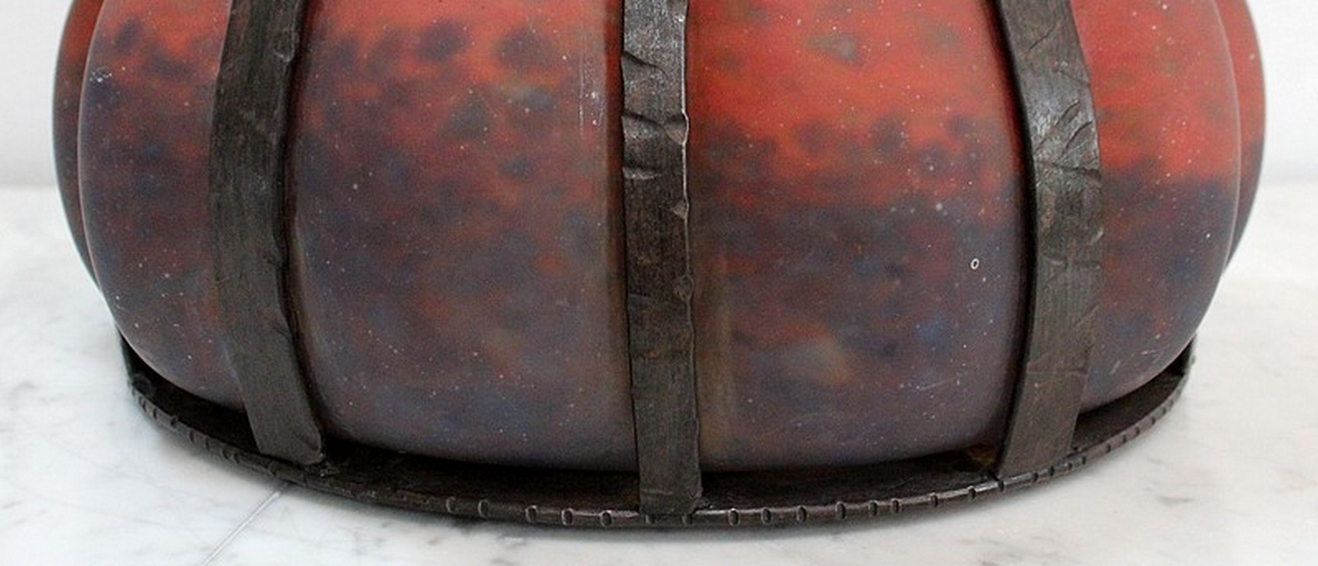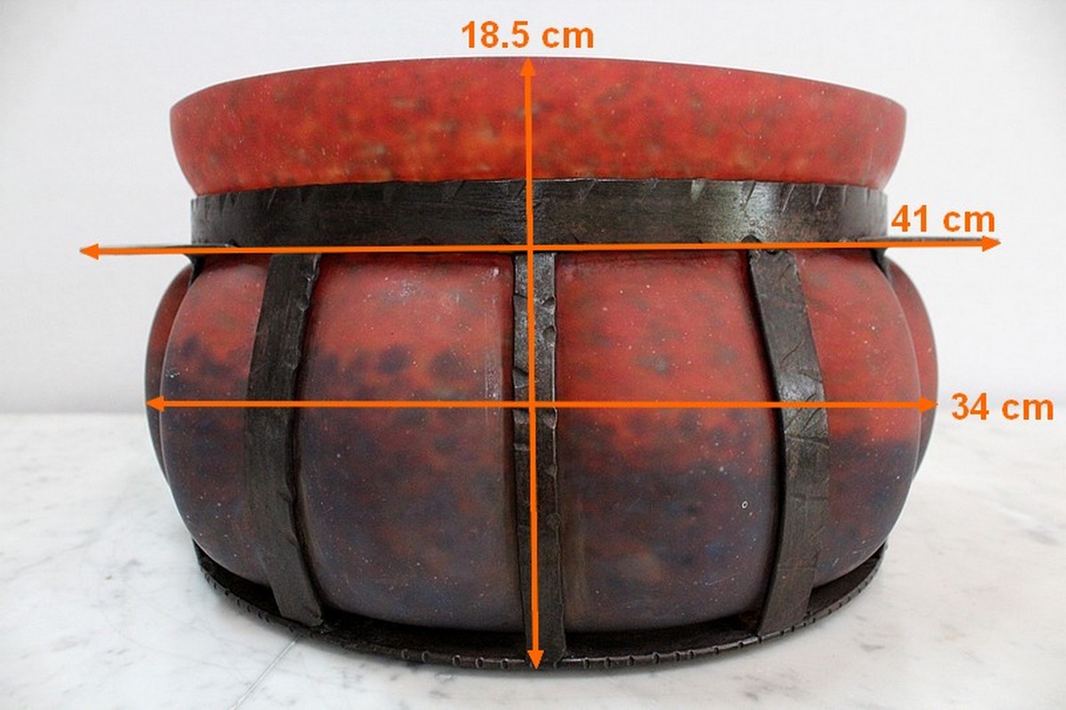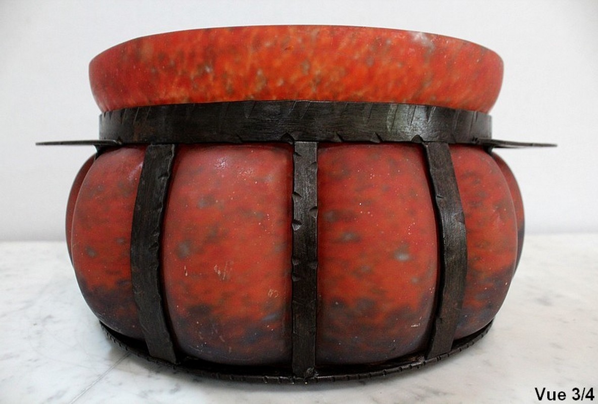 Coupe en Verre Marmoréen soufflée dans une Monture en Fer Forgé, signée Daum et Majorelle.
