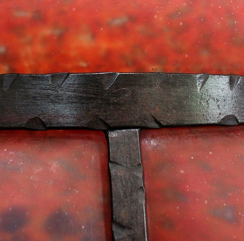 D’aspect Mat, cette Pièce a été soufflée à chaud dans une Monture sculptée en fer Forgé munie de deux anses.