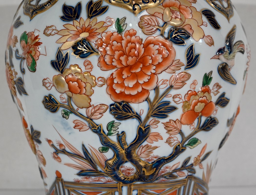 Important Vase à décor Imari, signé H. Gibot – 1943