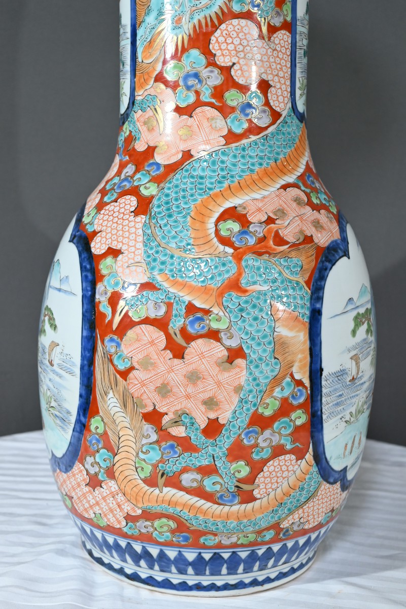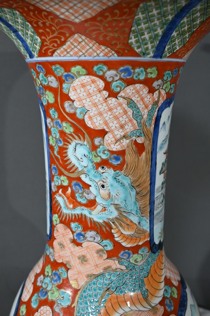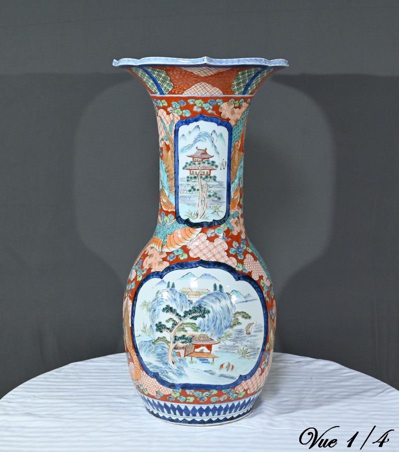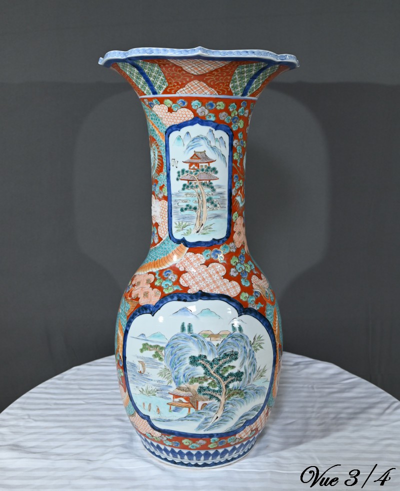 Ce grand vase Arita, en porcelaine, de l’ère Meiji est un exemple remarquable de l’artisanat japonais du XIXe siècle.