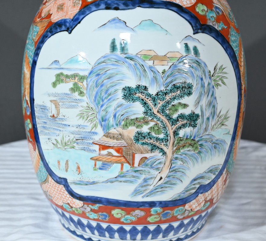 Il présente un corps pansu et un large col s’évasant légèrement vers le haut, typique du style Arita.