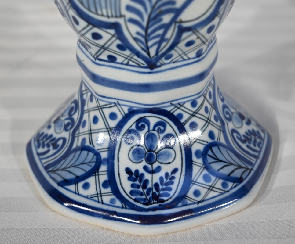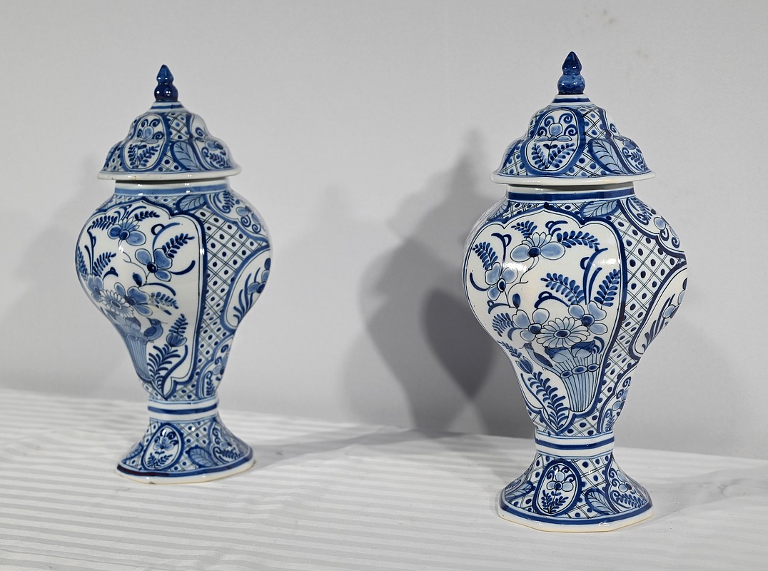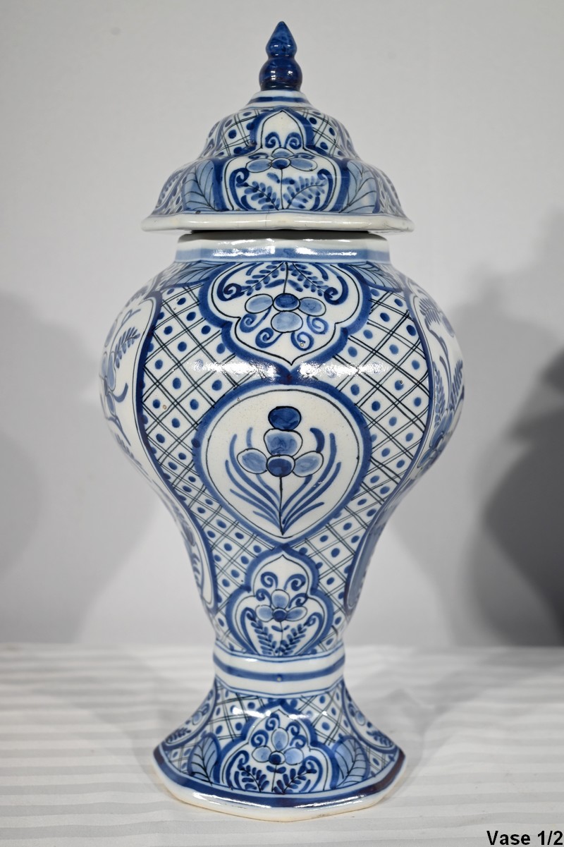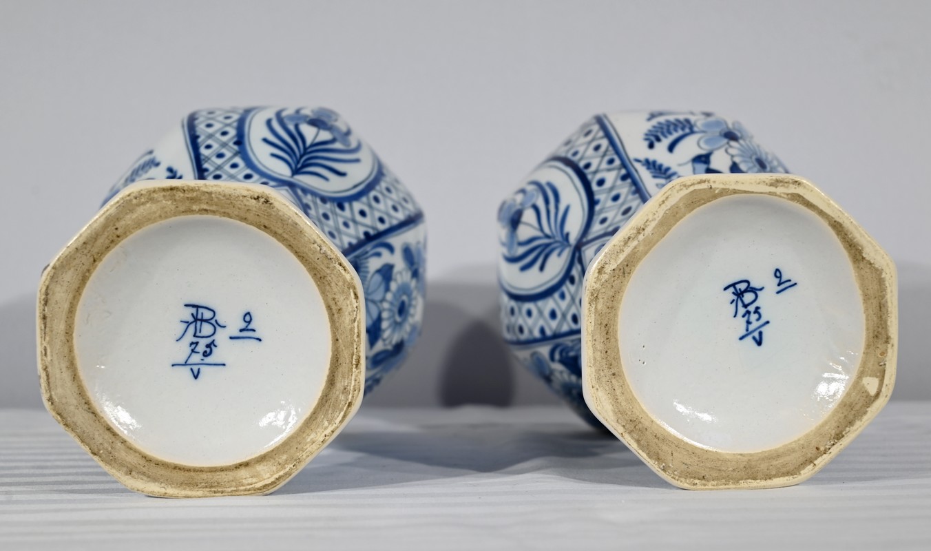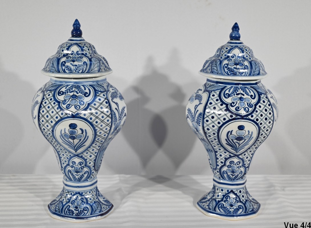 Paire de vases pansus, à côtes et à assise plate, en faïence issue de la prestigieuse manufacture Hollandaise.