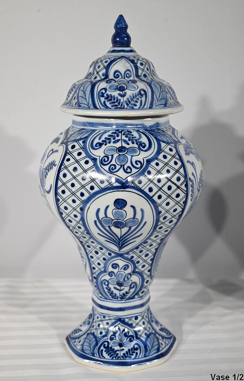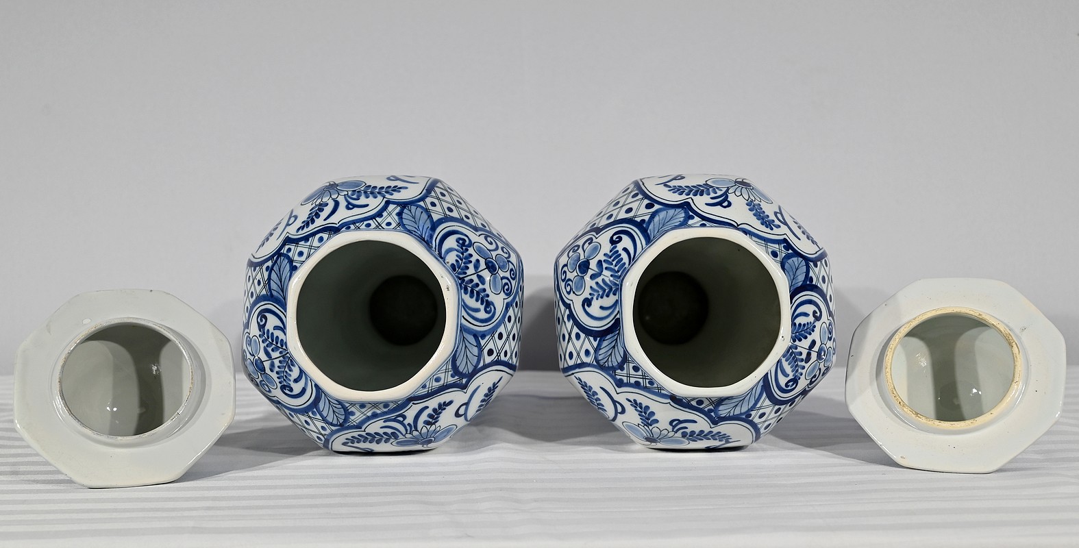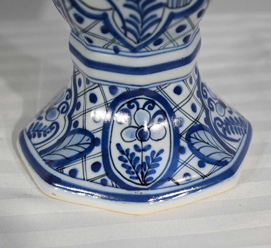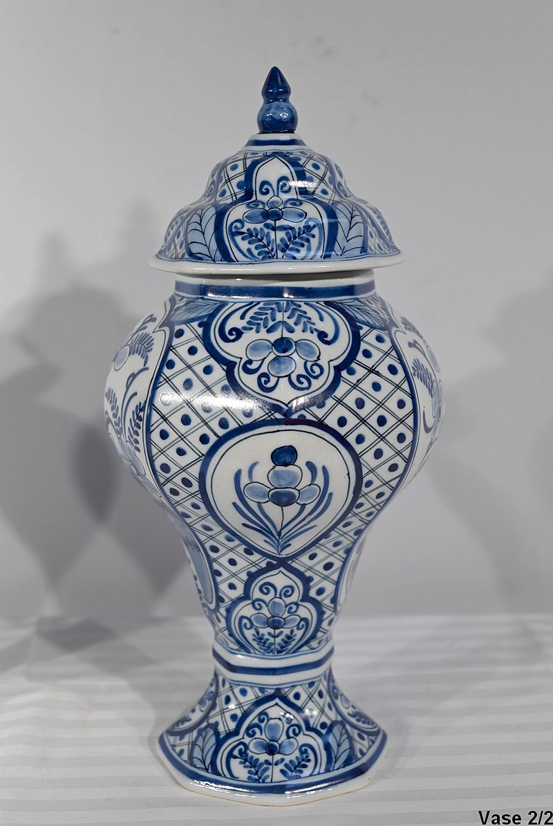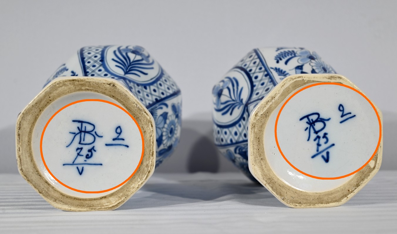 Paire de vases pansus, à côtes et à assise plate, en faïence issue de la prestigieuse manufacture Hollandaise.