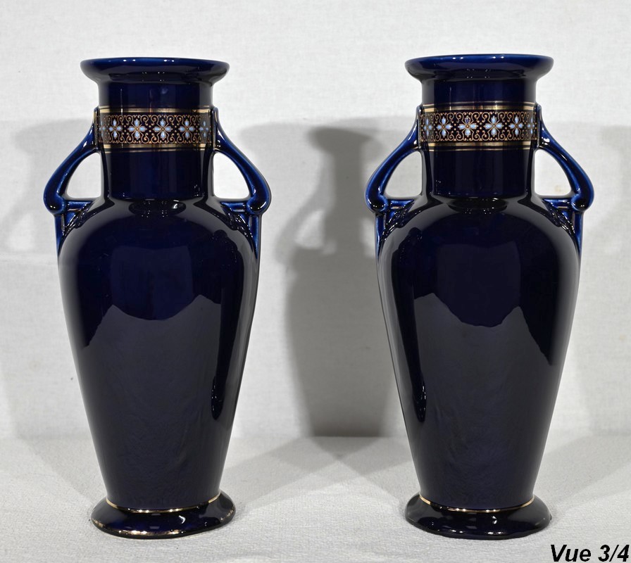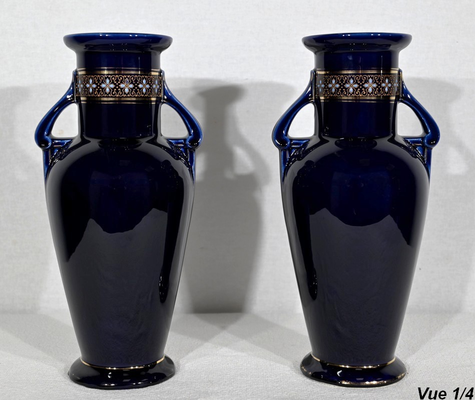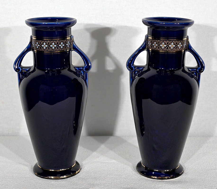 Paire de Vases en Faïence Émaillée – Début XXe