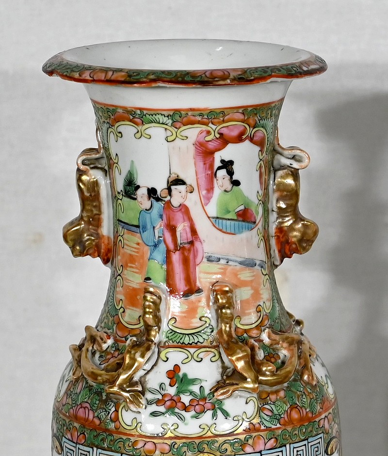 La décoration en émaux polychromes est typique du style Mandarin de la fin du XIXe siècle.