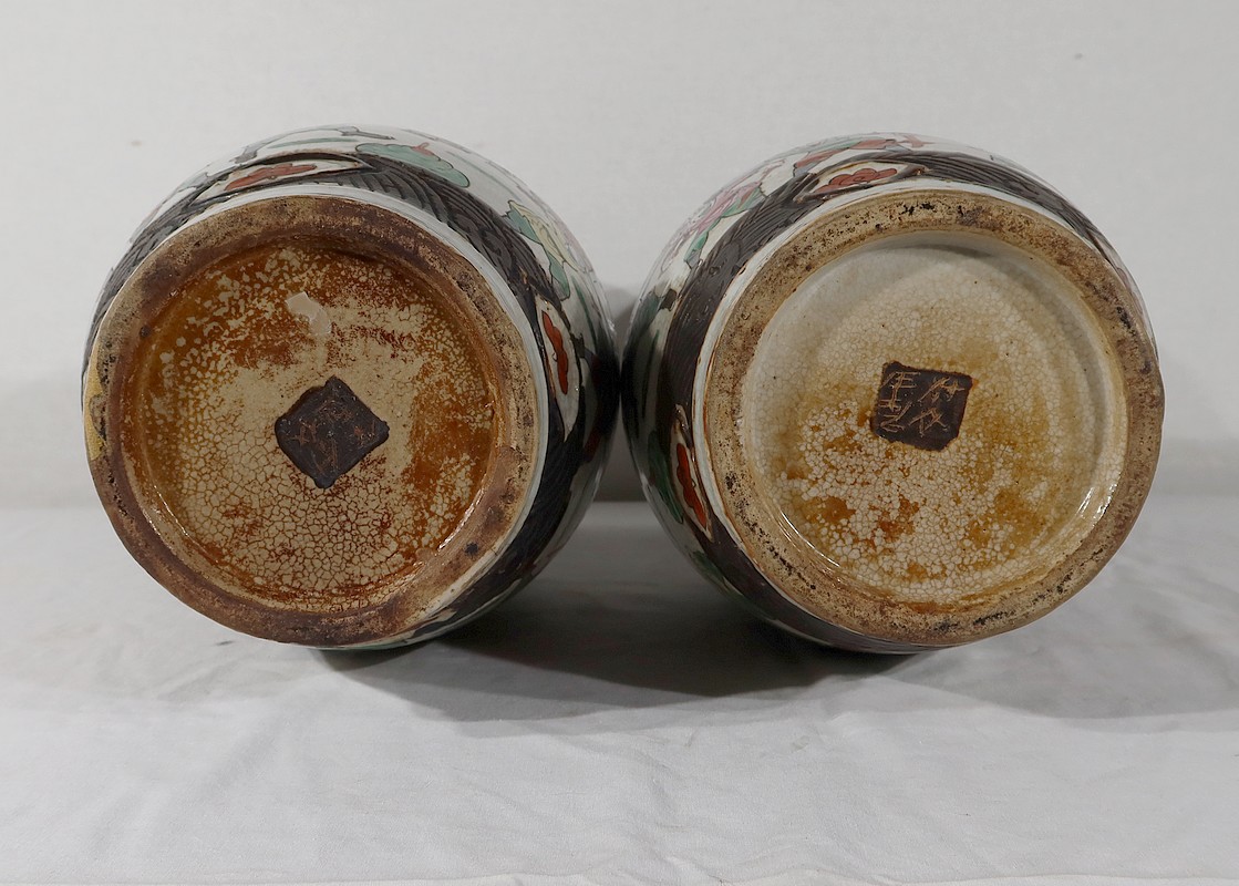Signés en dessous, ces vases de Nankin sont riches en décors et ornementations, chers aux artistes chinois de la dynastie Qing.