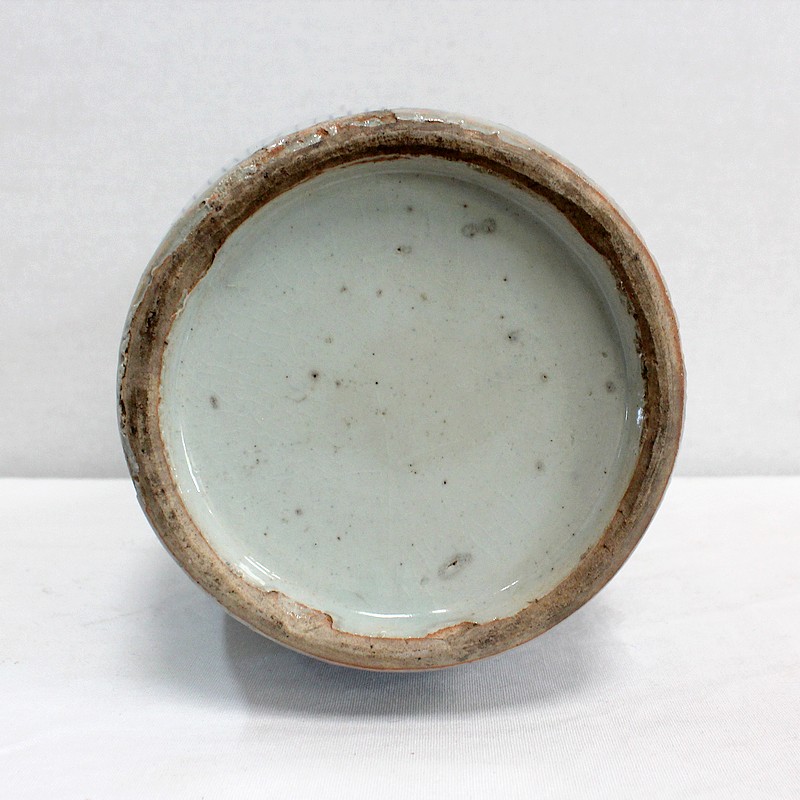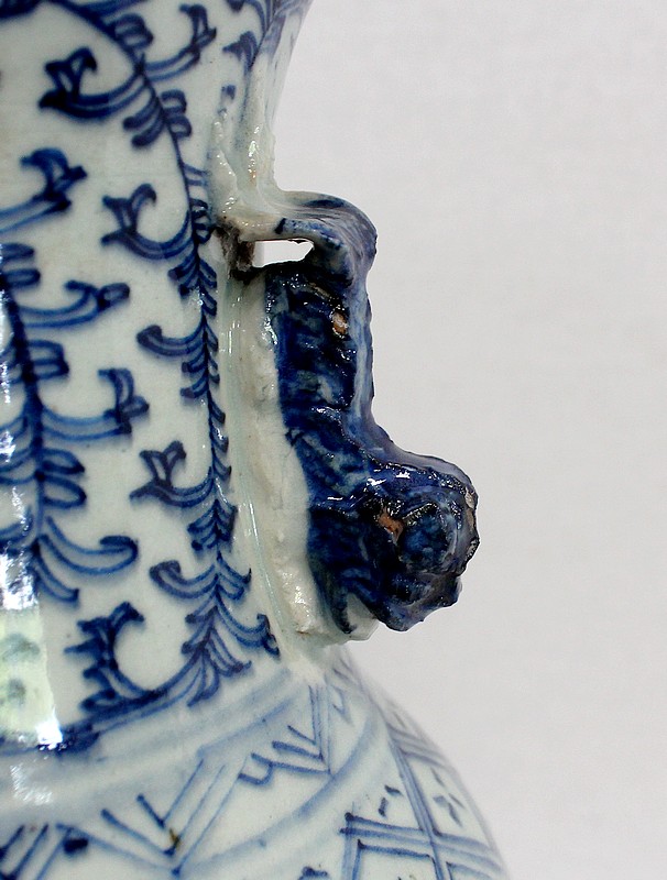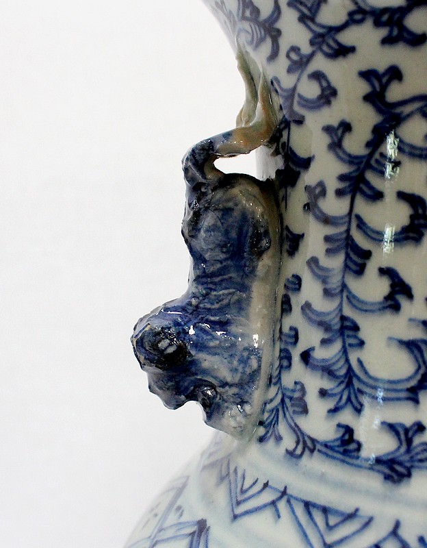 Cet objet décoratif bénéficie d’anses en forme de chiens de Fo et d’une panse ovoïde harmonieuse.