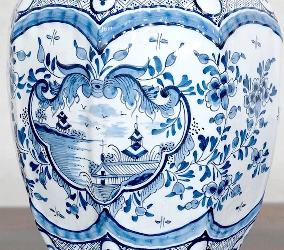 La faïence de Delft, originaire des manufactures néerlandaises depuis le XVII siècle, se caractérise par son émaillage et la finesse de ses décors ; qualités dont ce vase lumineux peut se prévaloir.
