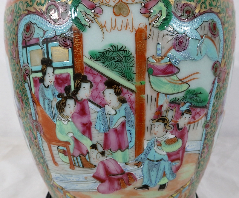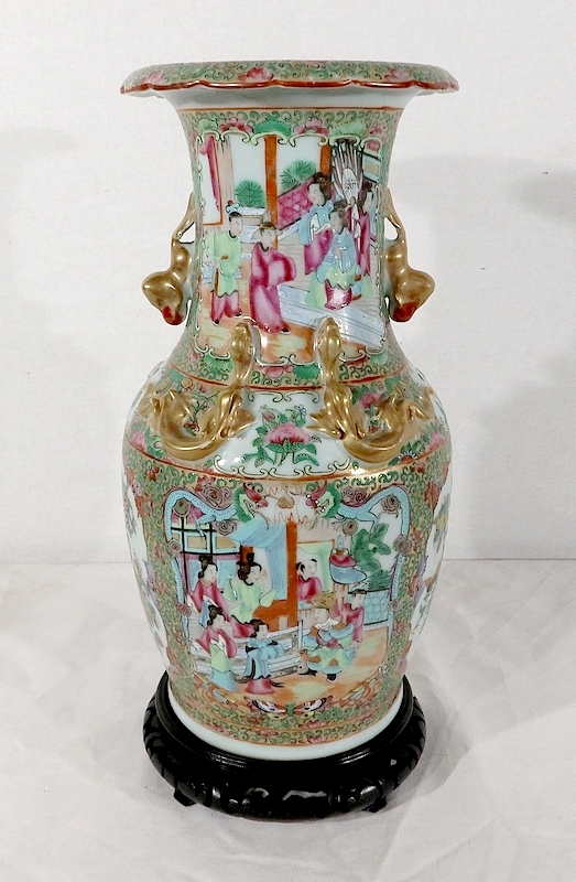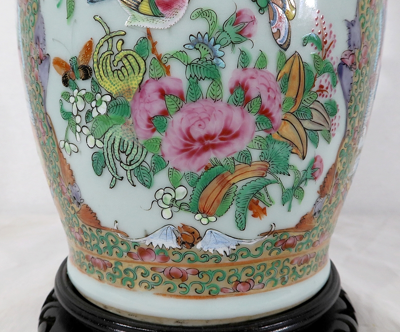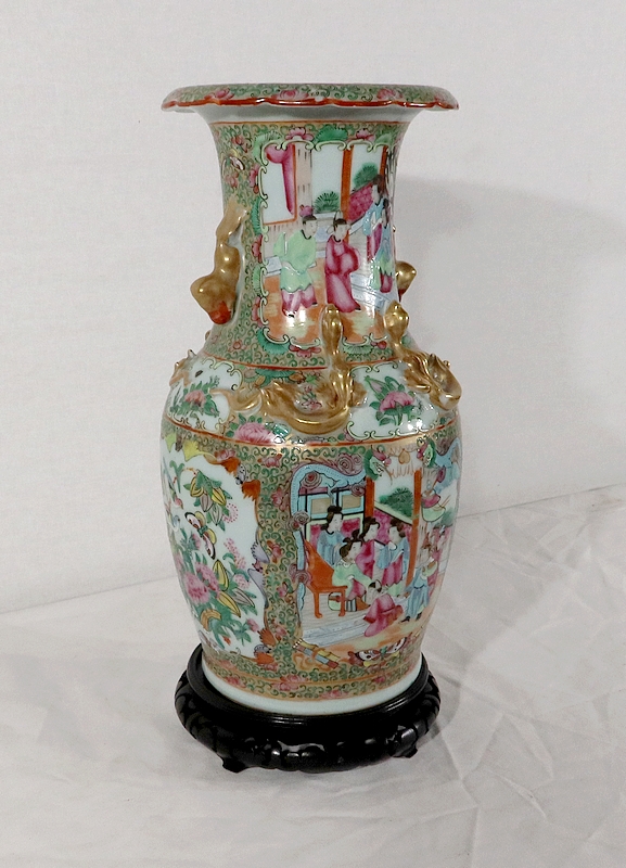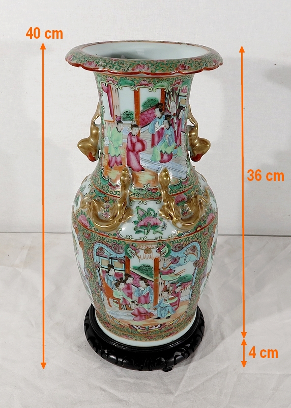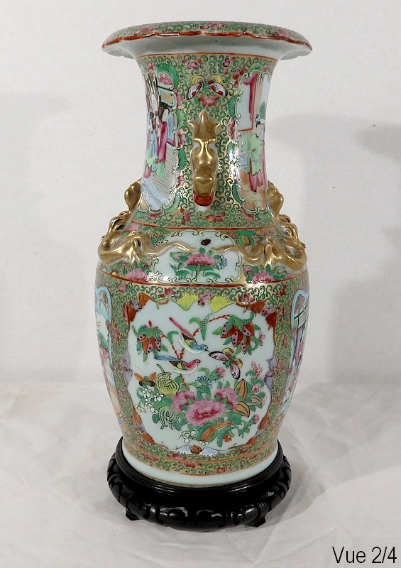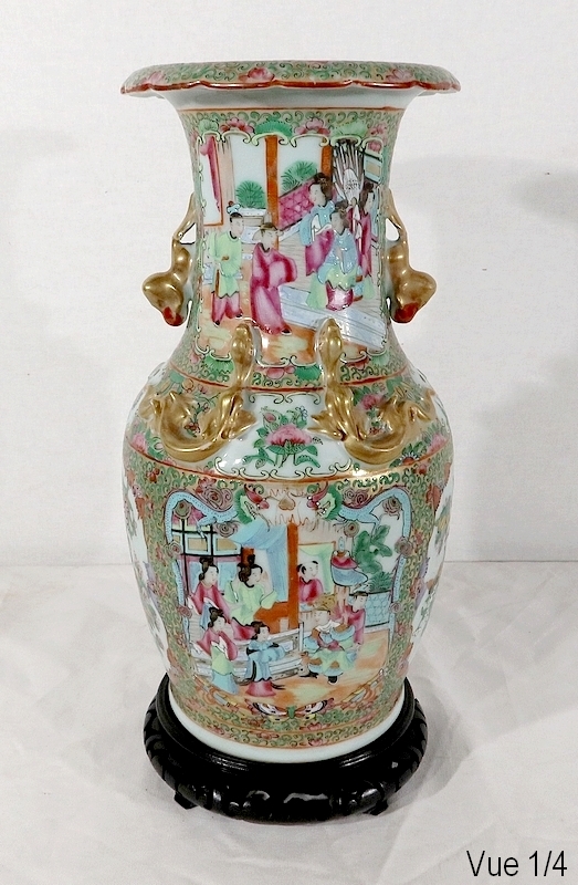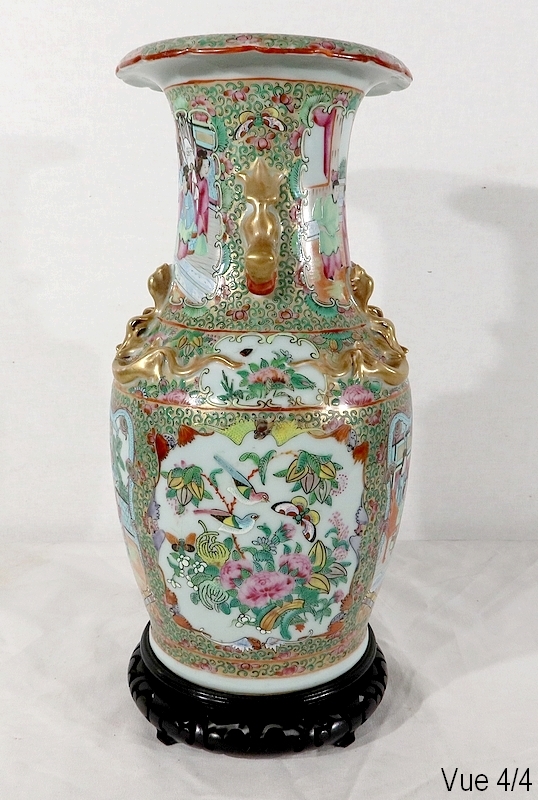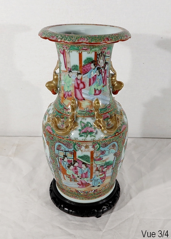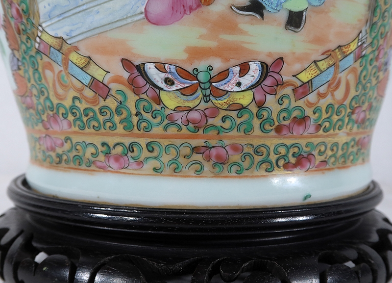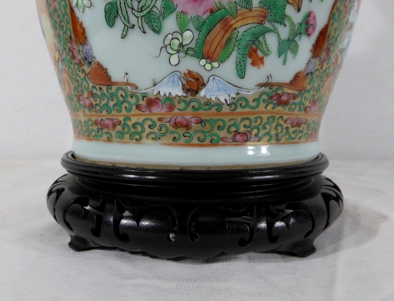 Vase en porcelaine de Canton sur socle en bois, Chine – XIXe