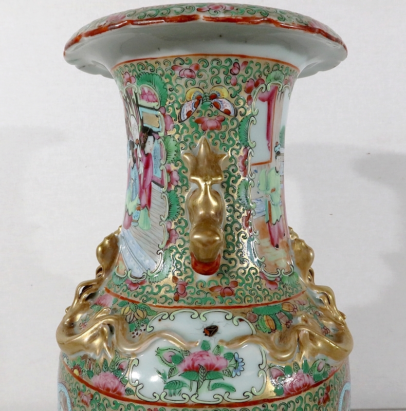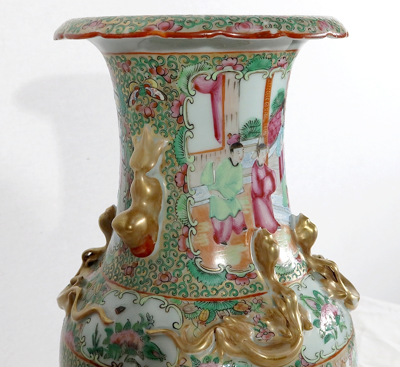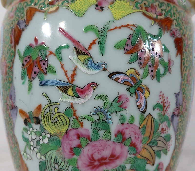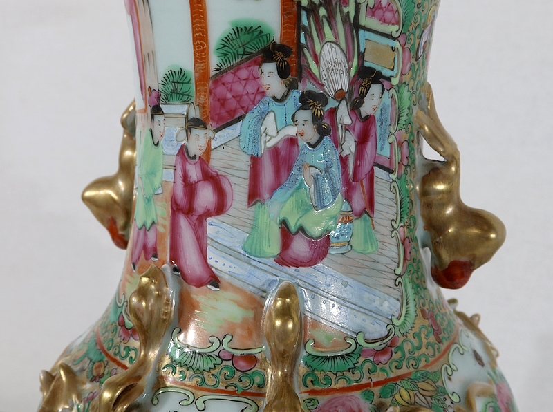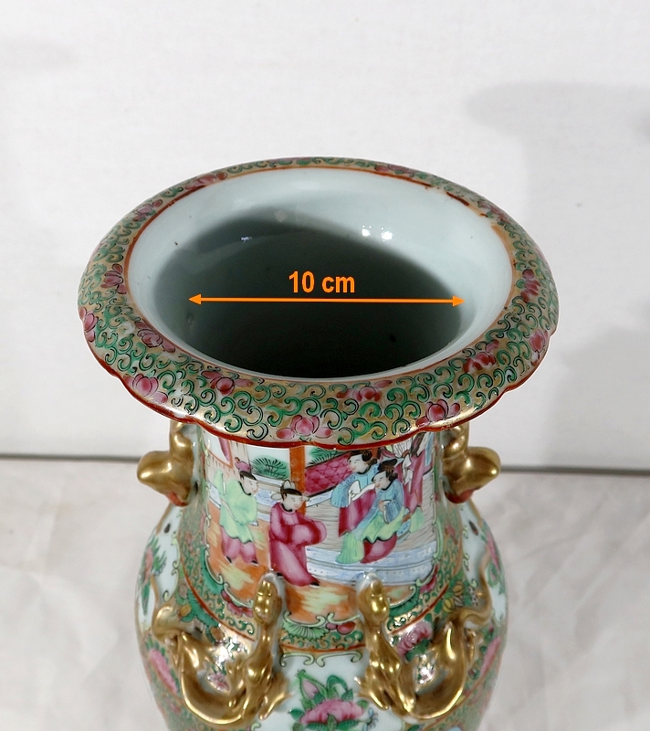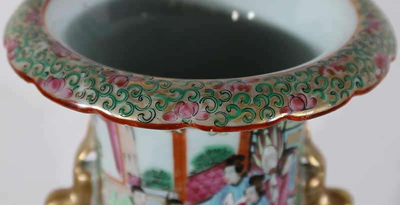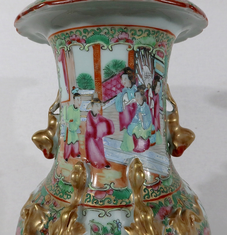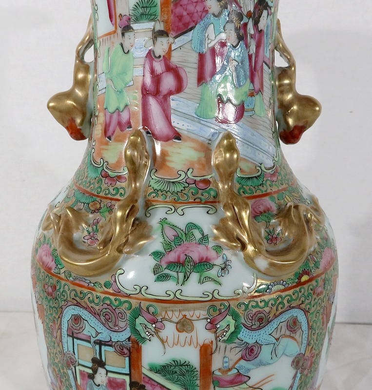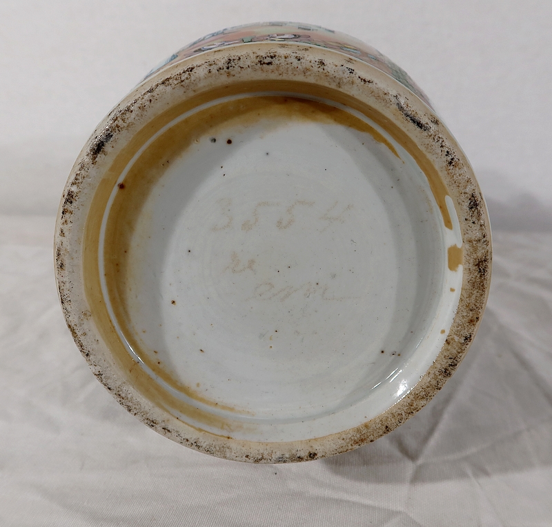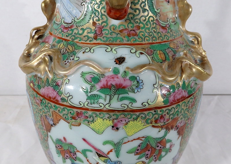 Vase en porcelaine de Canton sur socle en bois, Chine – XIXe