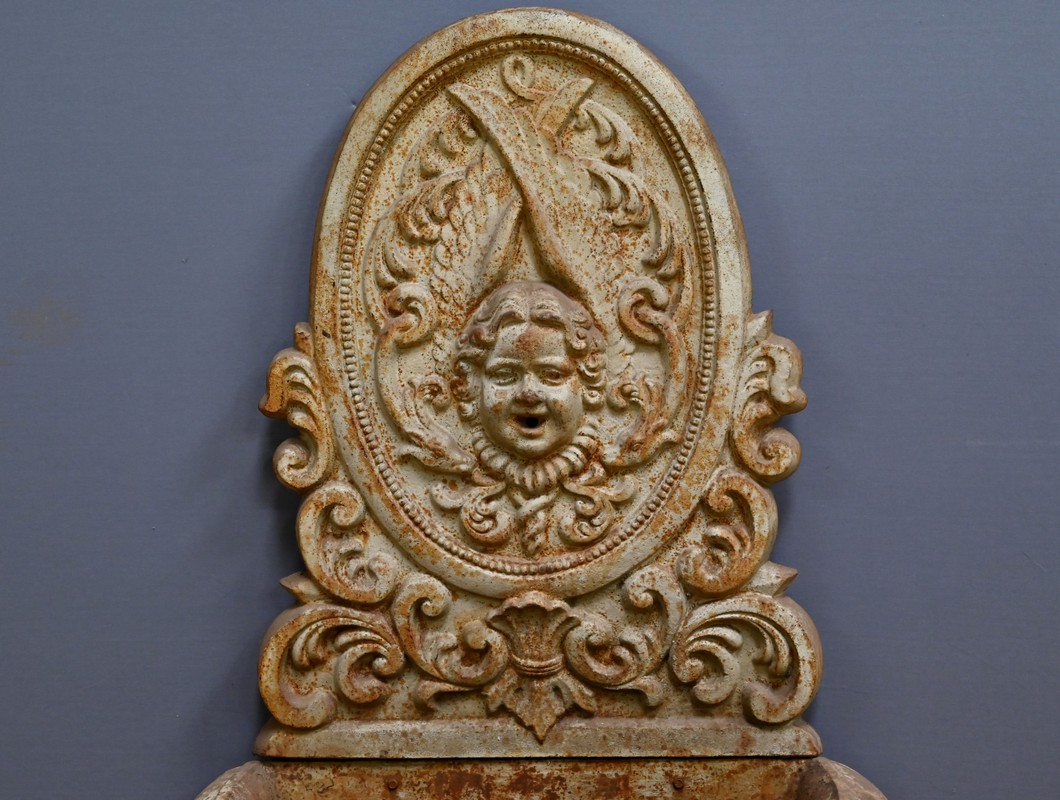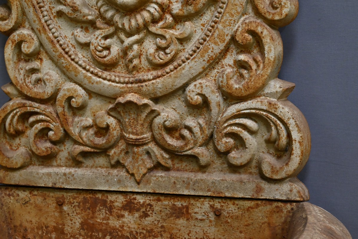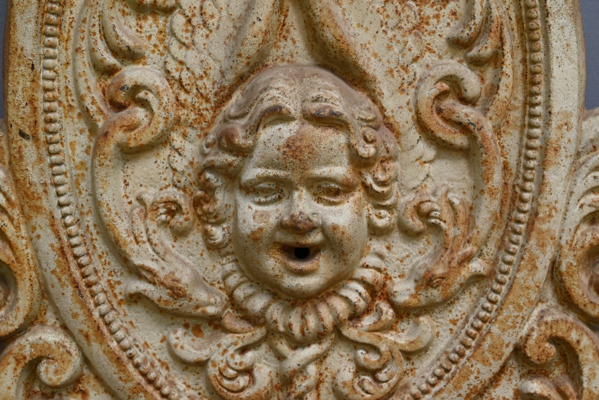 Cette fontaine en fonte, datant du début du XXe siècle, est un véritable témoignage du savoir-faire artisanal et du souci du détail qui caractérisait l’époque.