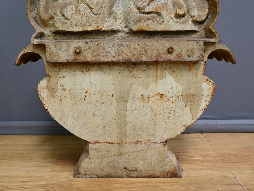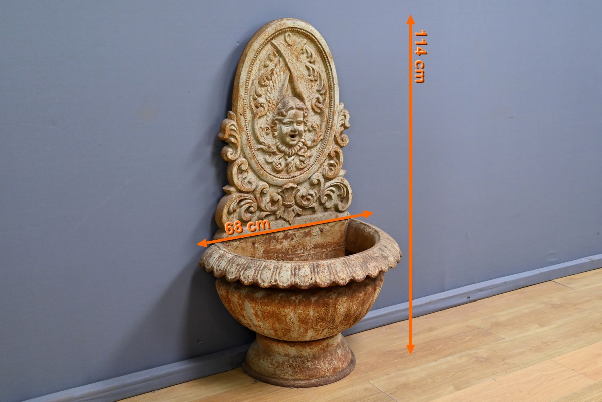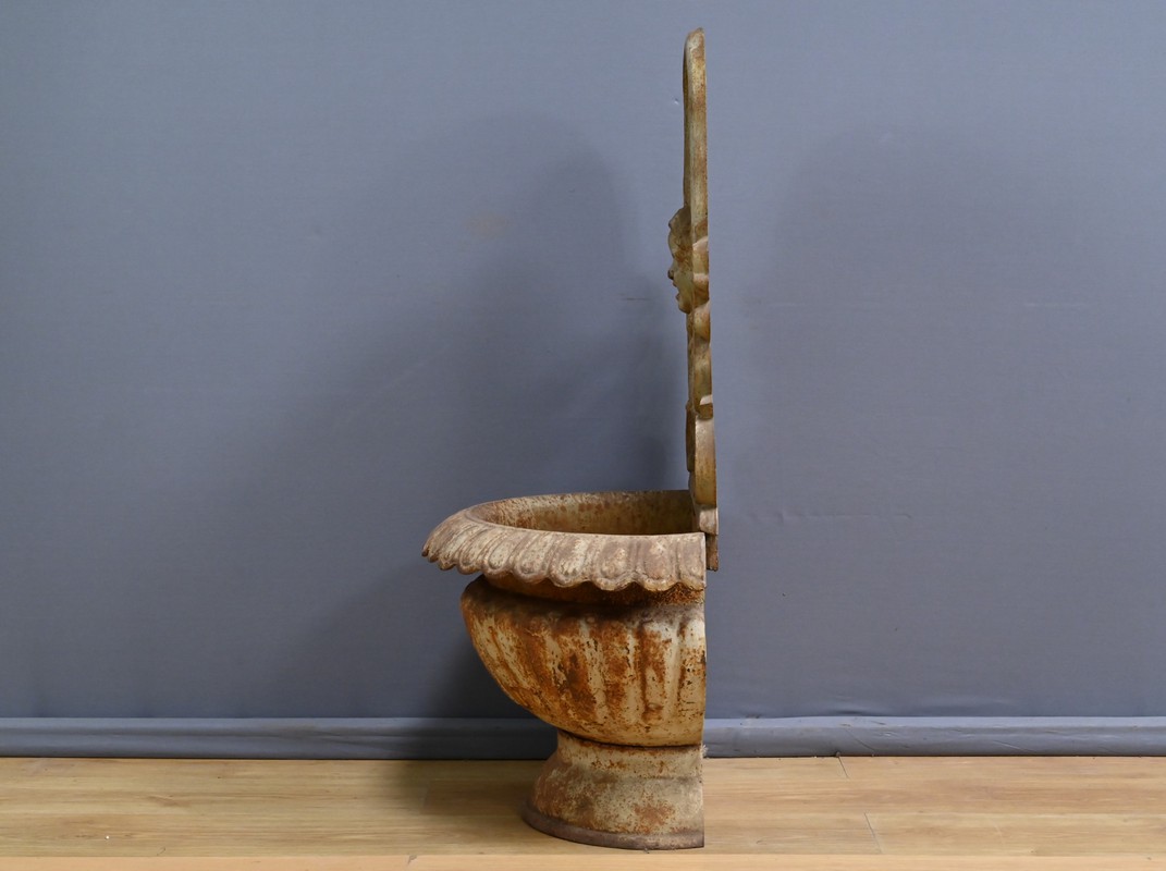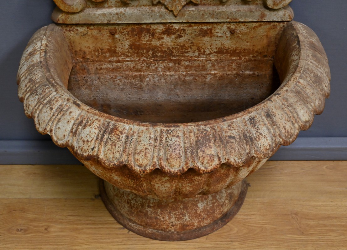 Cette fontaine en fonte, datant du début du XXe siècle, est un véritable témoignage du savoir-faire artisanal et du souci du détail qui caractérisait l’époque.