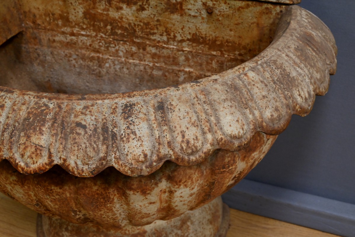 Avec sa patine rouille, témoignage de son ancienneté et de son authenticité, cette fontaine s’intègre parfaitement dans un décor empreint de nostalgie et de charme.