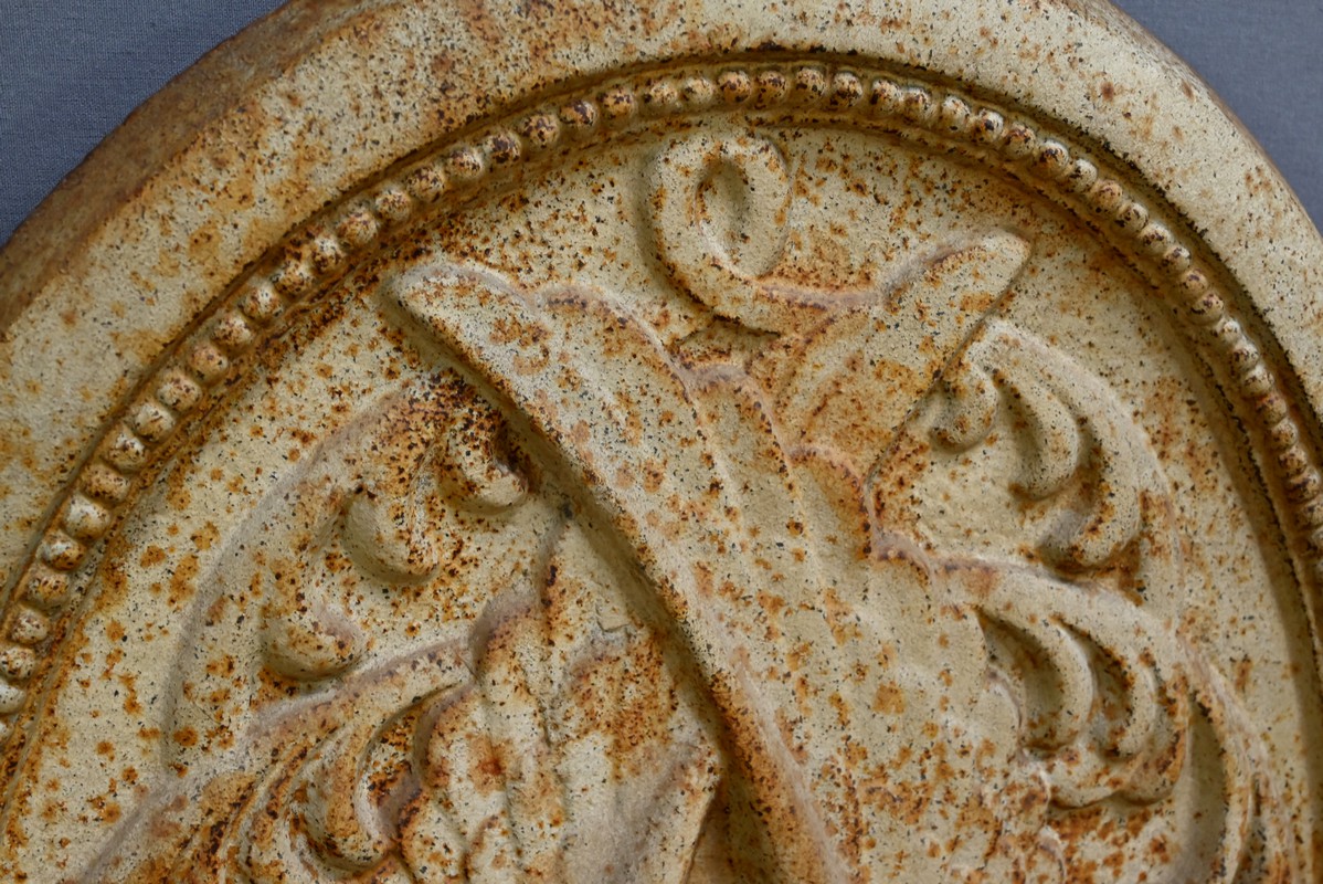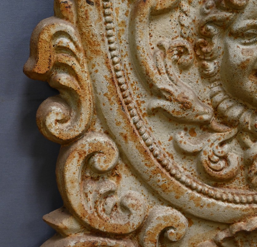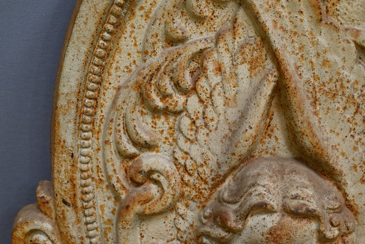Sur la plaque arrière, un chérubin finement sculpté capte immédiatement l’attention.