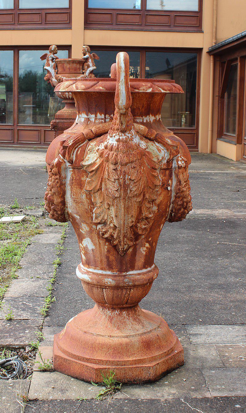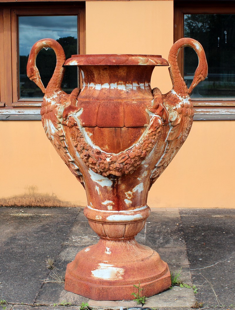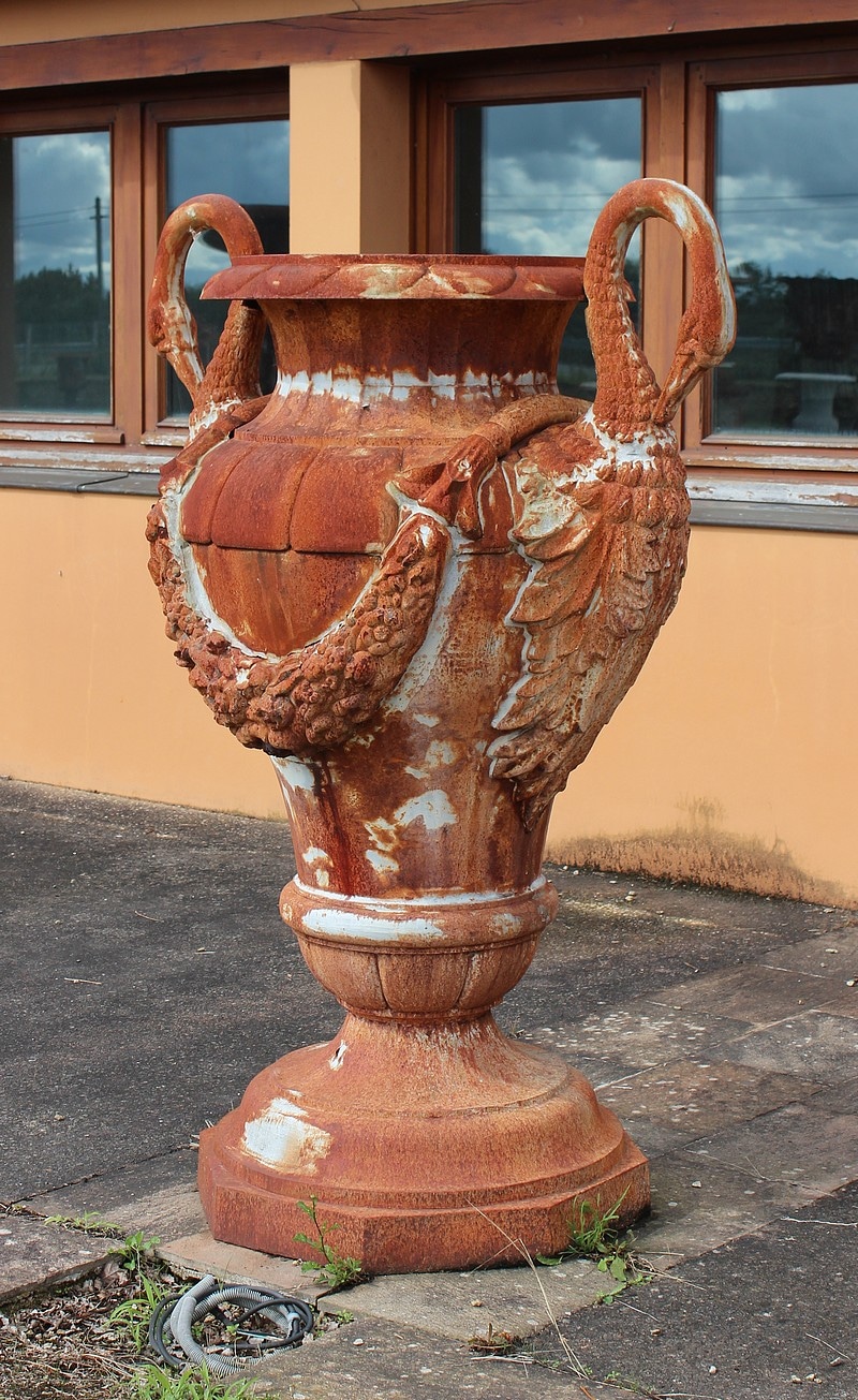 Grand vase ornemental en Fonte Cols de Cygne