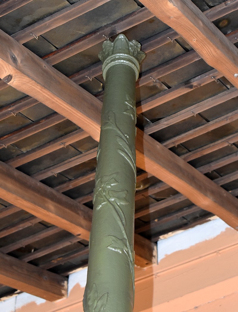 Il est orné sur sa partie haute de tiges agrémentées de feuilles de lauriers et de lierre montant en torsade jusqu’en haut.