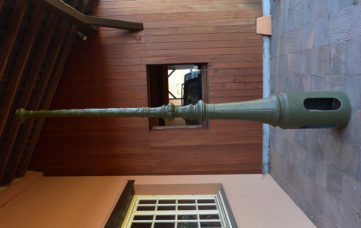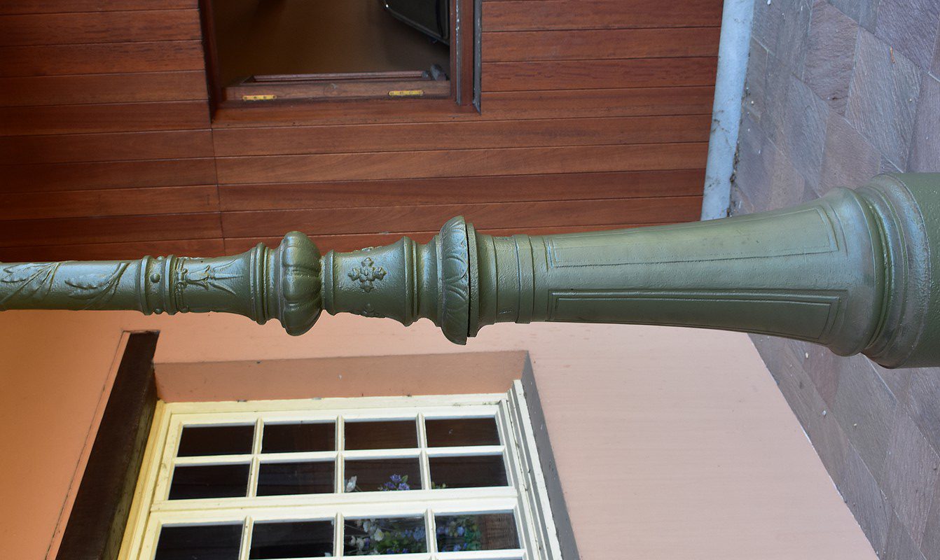 Lampadaire à bec de gaz en Fonte peint en vert.