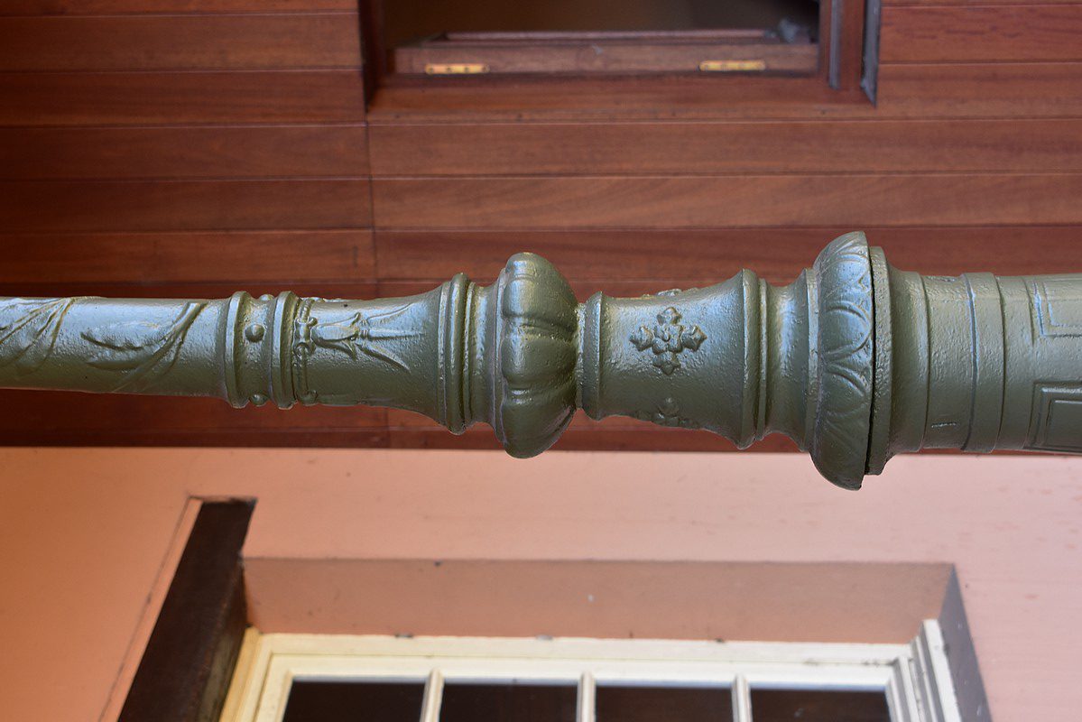 Il est orné sur sa partie haute d’une tige agrémentée de rameaux de lauriers montant en torsade jusqu’en haut.