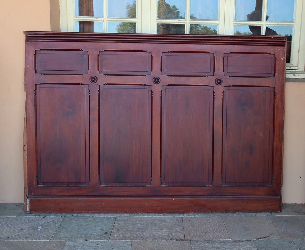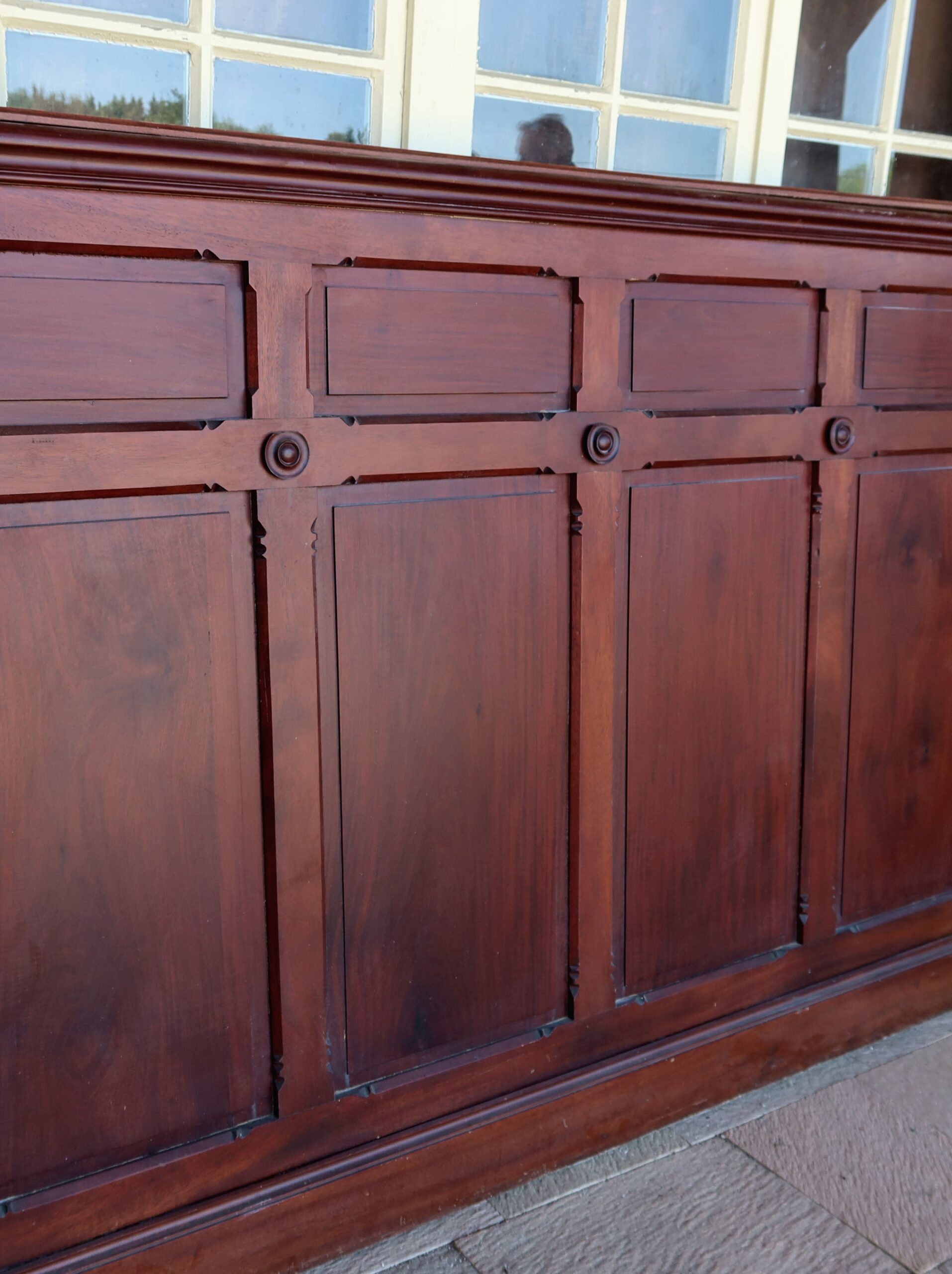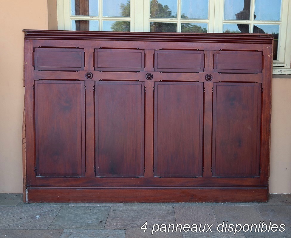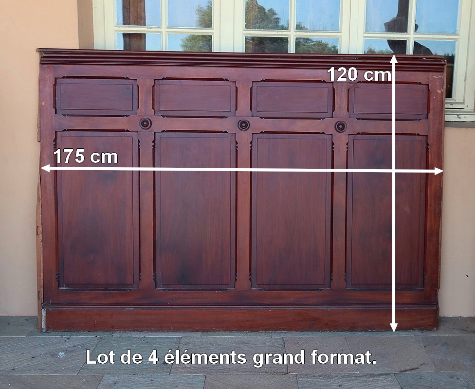 Constitué de 4 grands panneaux de boiseries et de huit plus petits, cet ensemble couvre une surface d’environ 12 mètres linéaires.