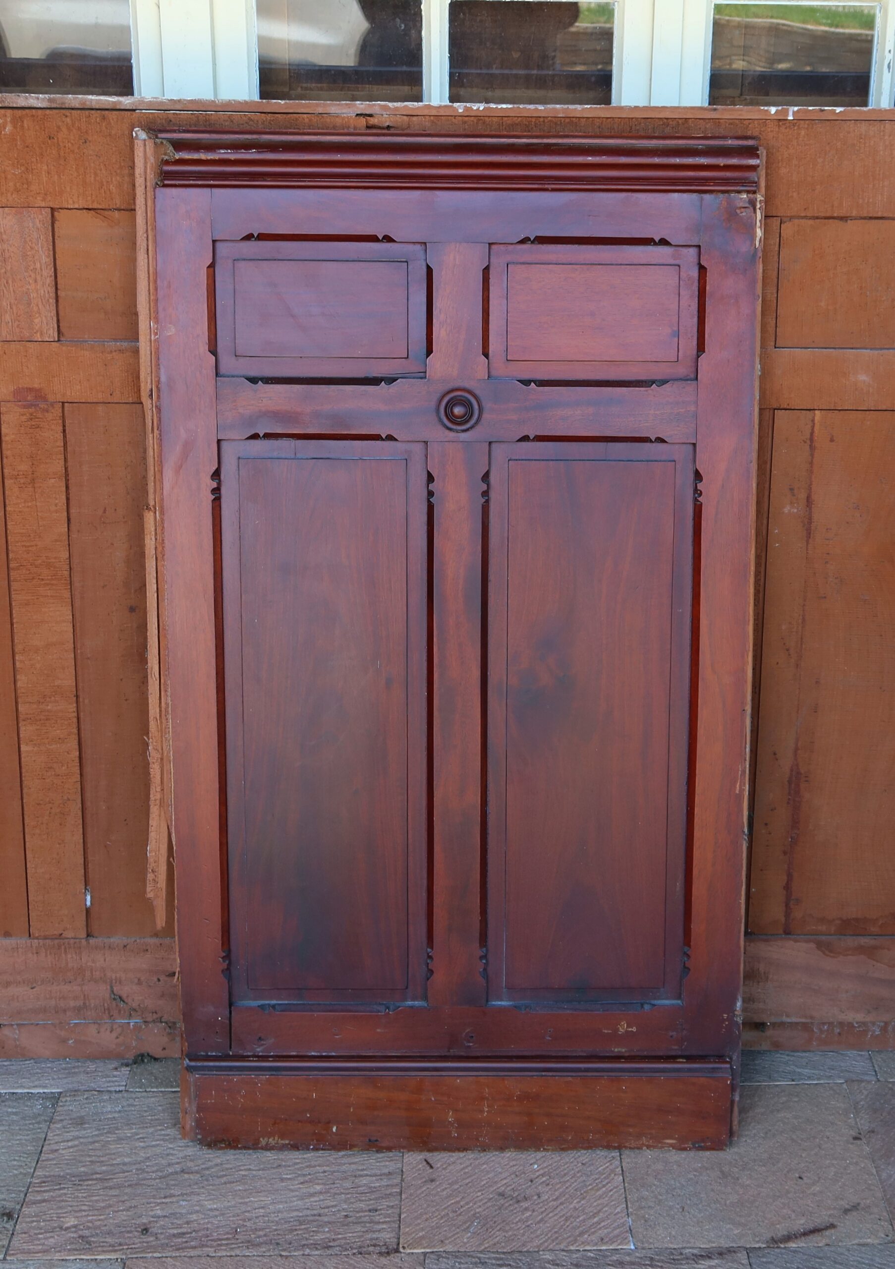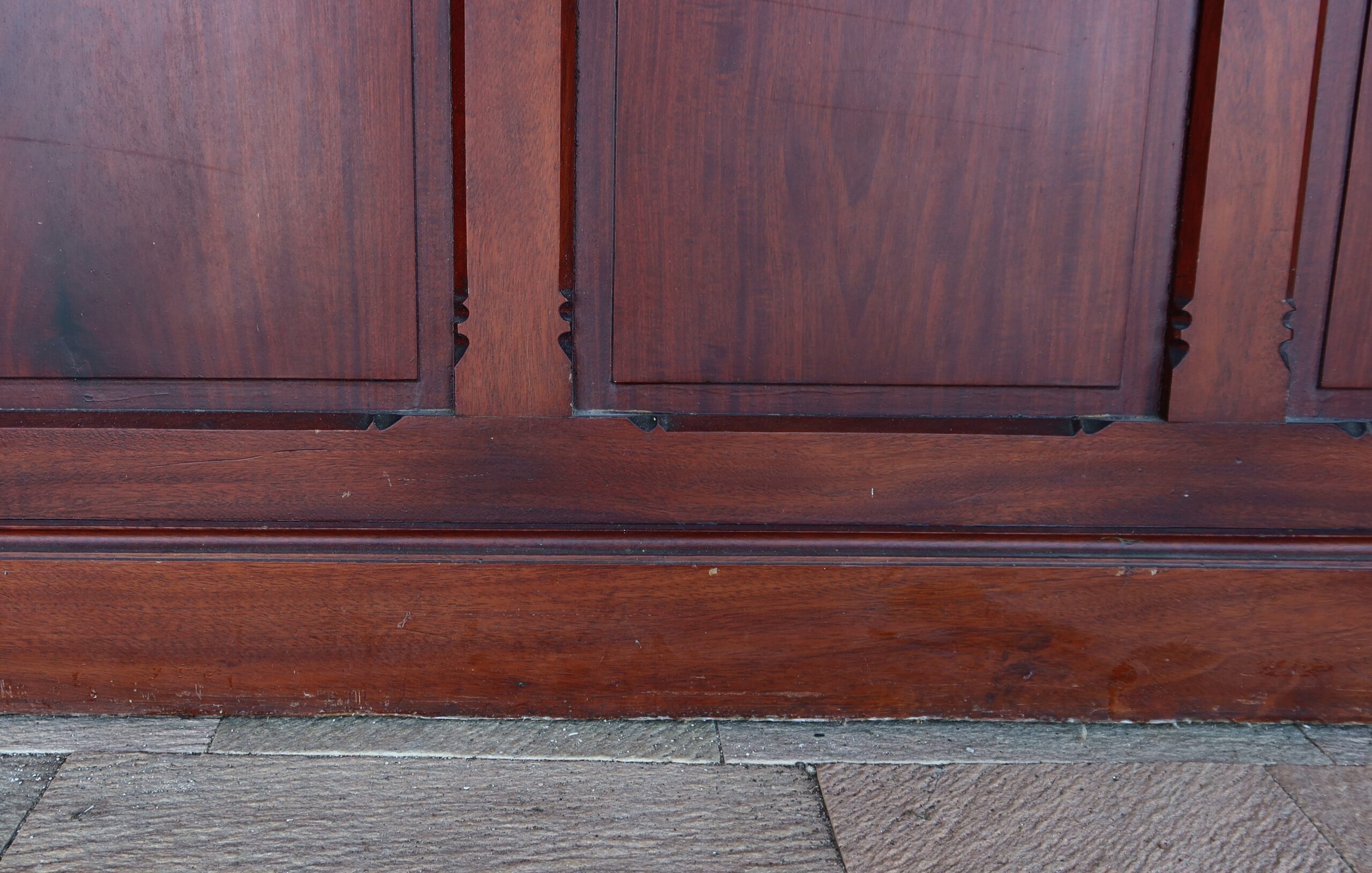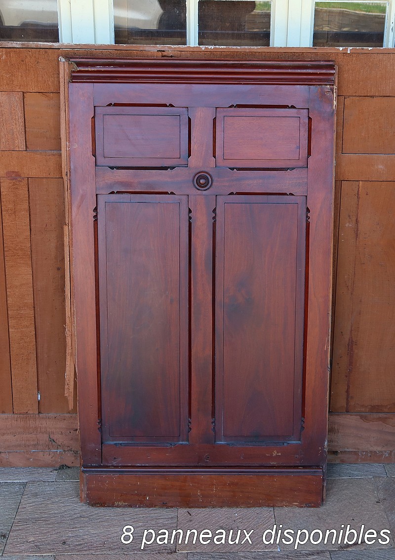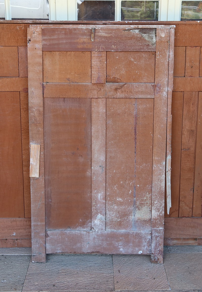 Les grandes boiseries sont composées de 4 hauts panneaux à platebande et de montants chanfreinés. En partie haute, quatre petits panneaux sont également entourés de traverses chanfreinées. L’ensemble est sommé d’une cimaise moulurée.