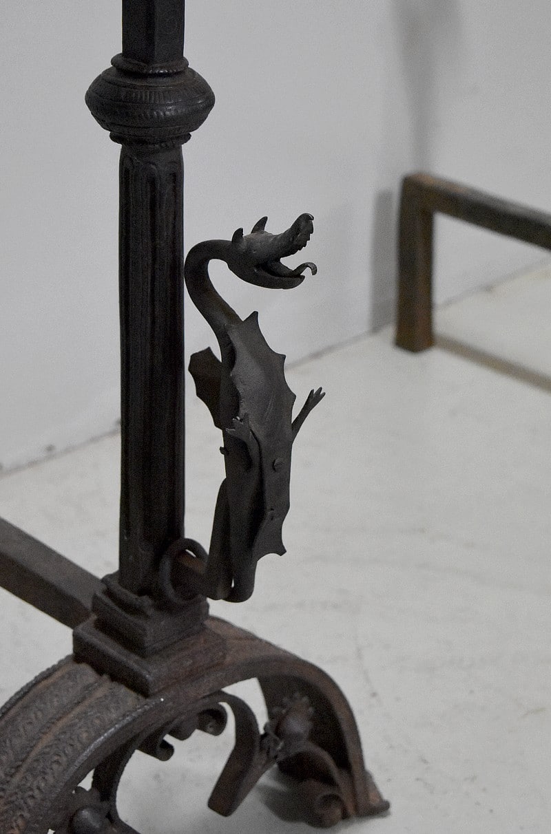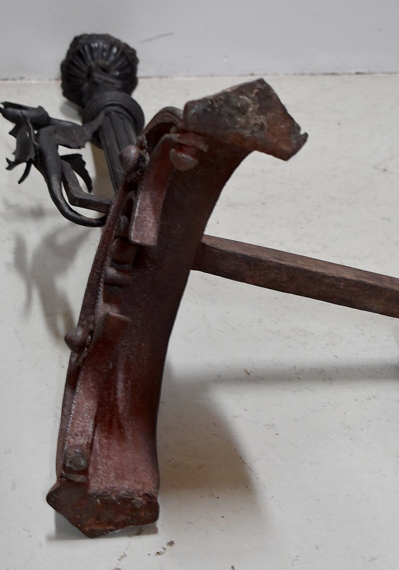 Paire de chenets de châteaux en Fonte et fer forgé.