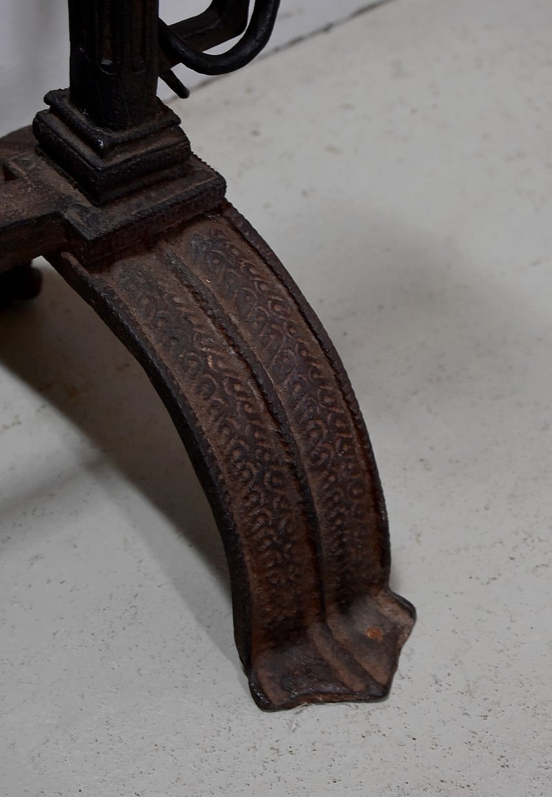 Ils reposent sur un pied en demi-cercle décoré en trilobé, donnant un esprit gothique.
