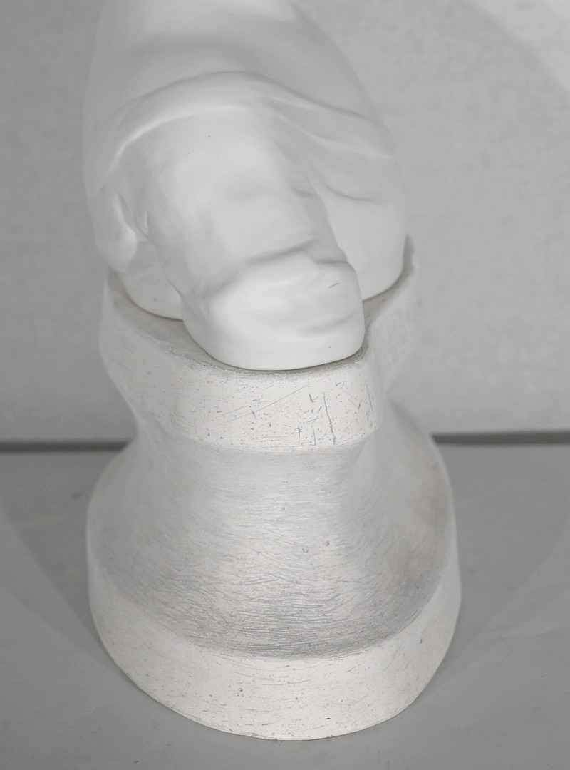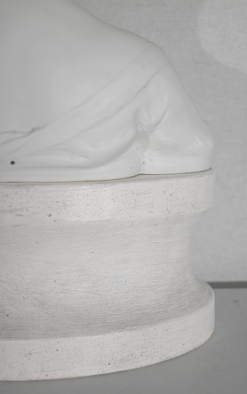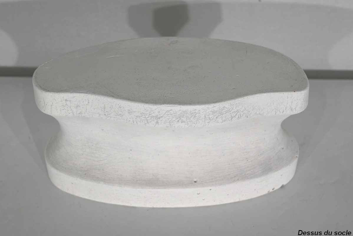 Cette œuvre est disposée sur un socle en plâtre.