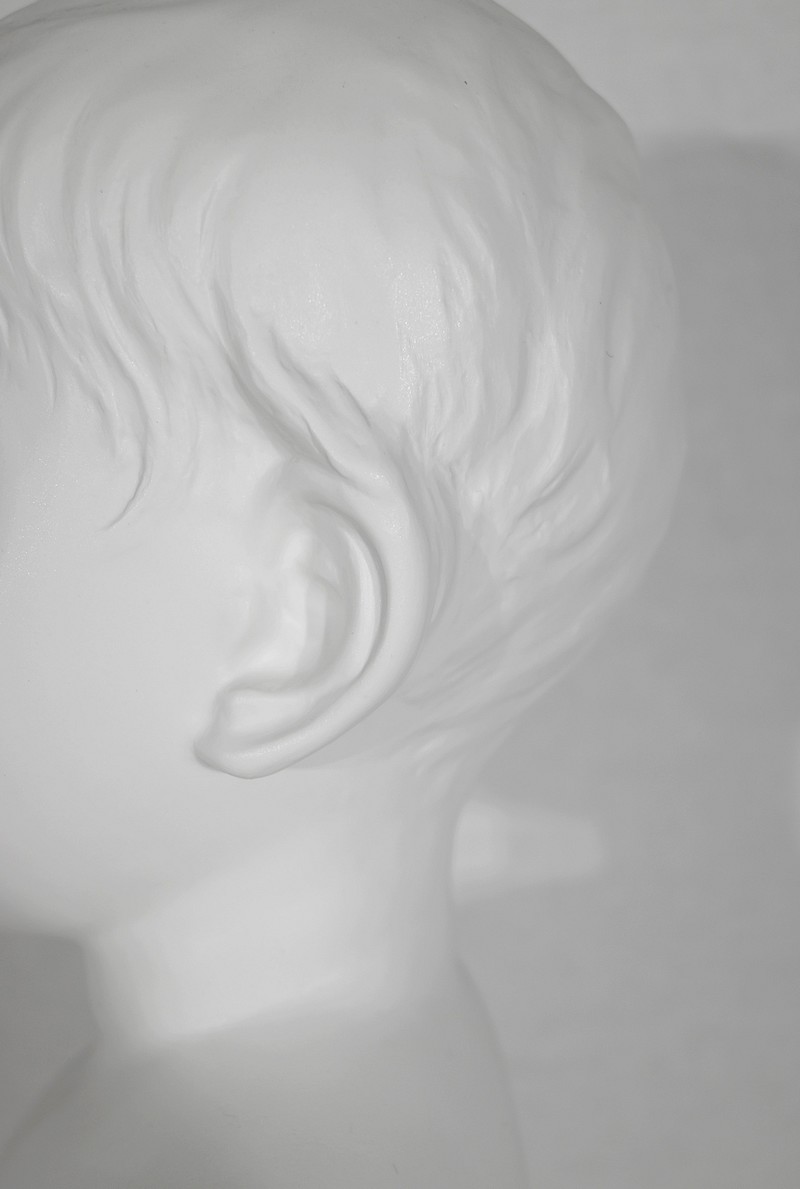 Buste d’enfant en biscuit signé par la manufacture nationale de céramique de Sèvres.