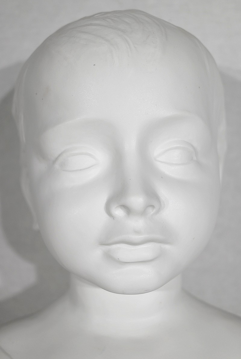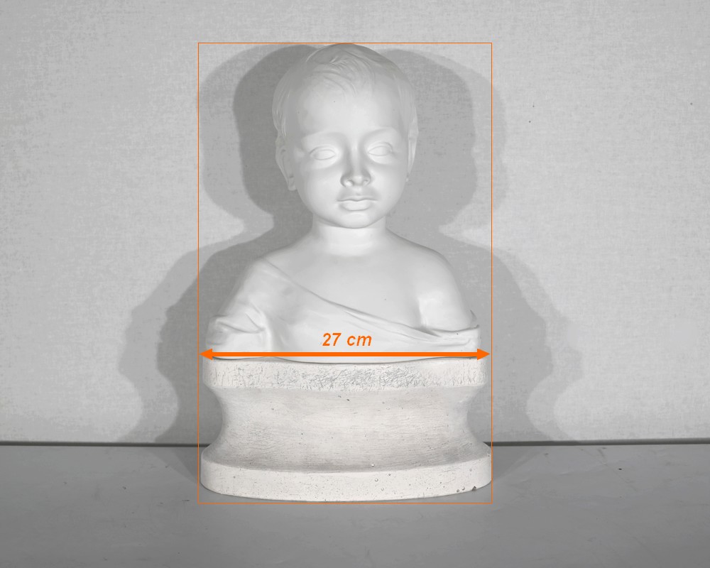 L’enfant est ici vêtu d’une toge, son épaule est dénudée, ses cheveux ondulés entourent son visage enfantin, mis en valeur par la sérénité qui s’en dégage.