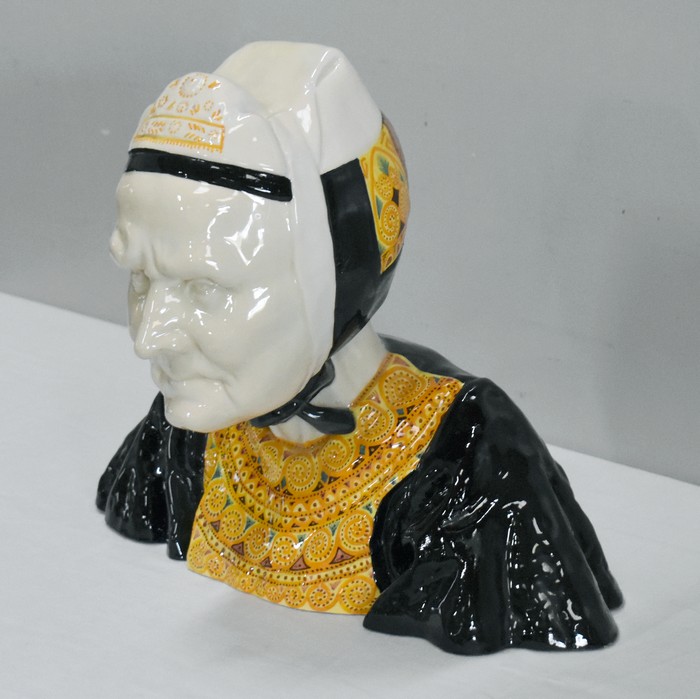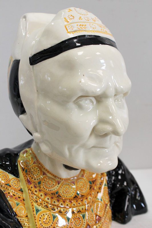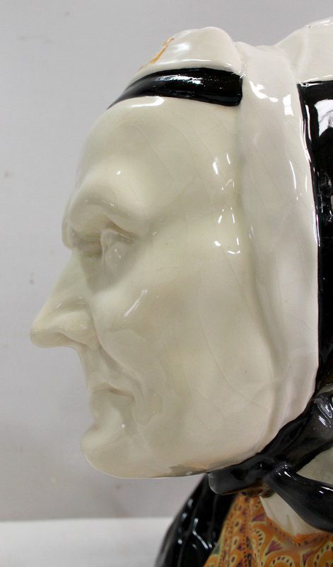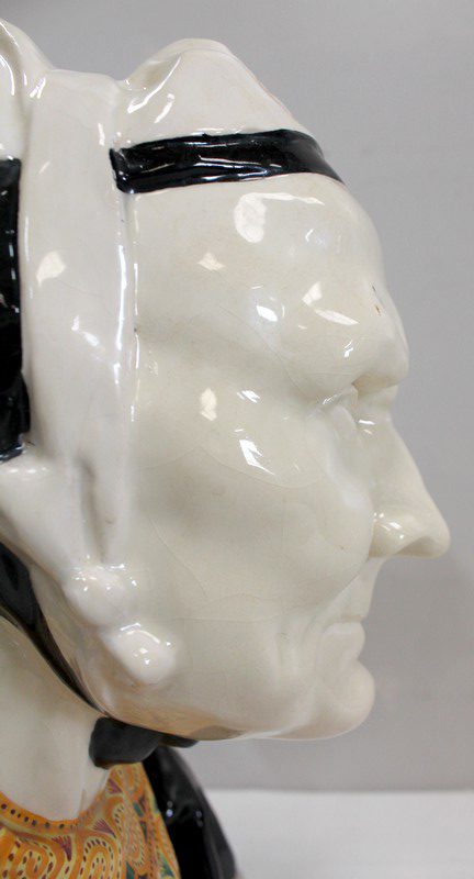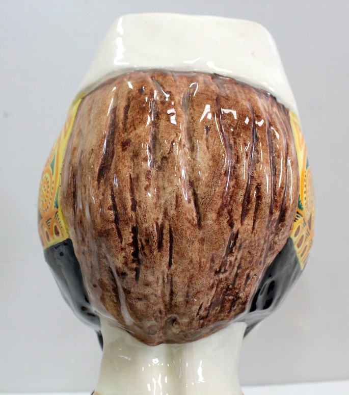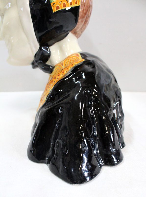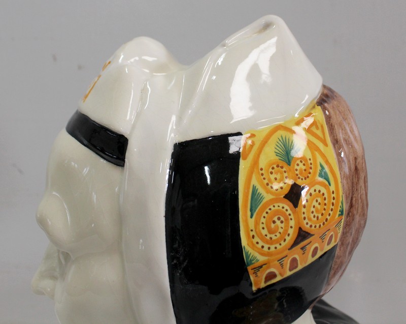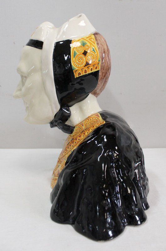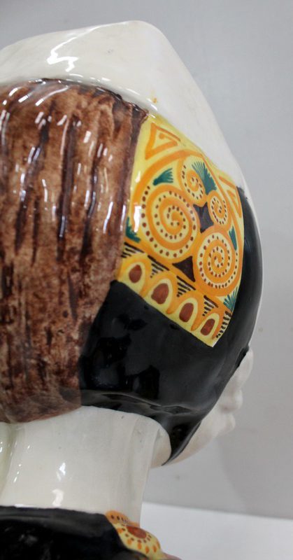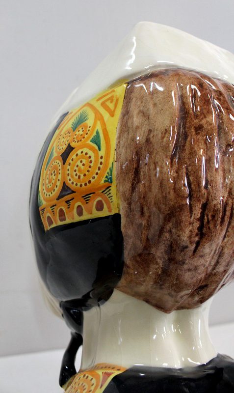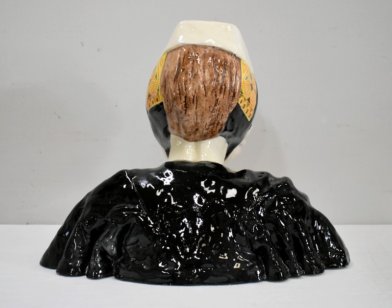 Buste en Faïence Polychrome de la Sculptrice Nantaise Henriette Porson (1874 – 1963), réalisé par l’emblématique manufacture HB, et représentant une grand-mère Bigoudène.