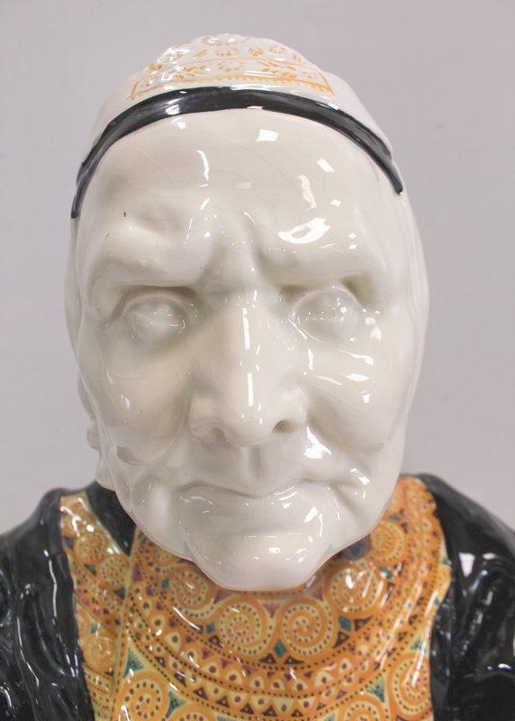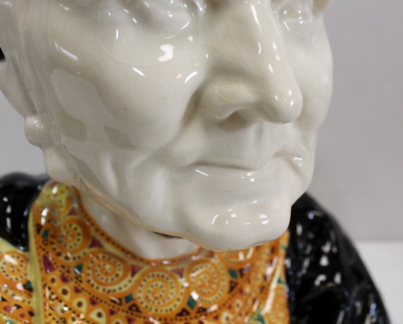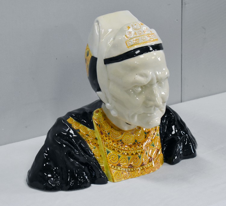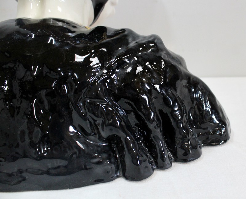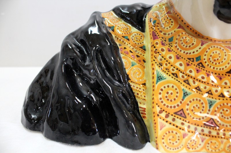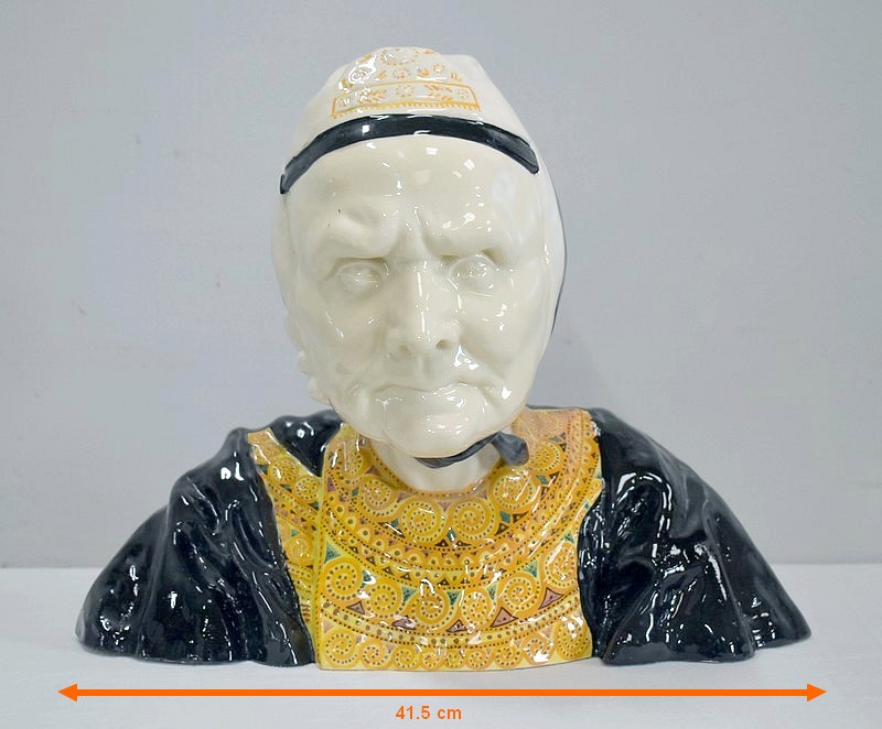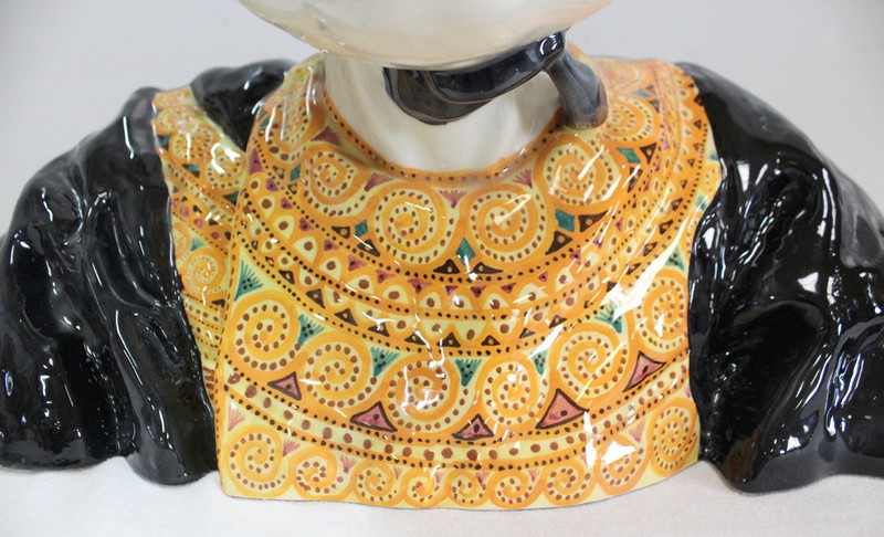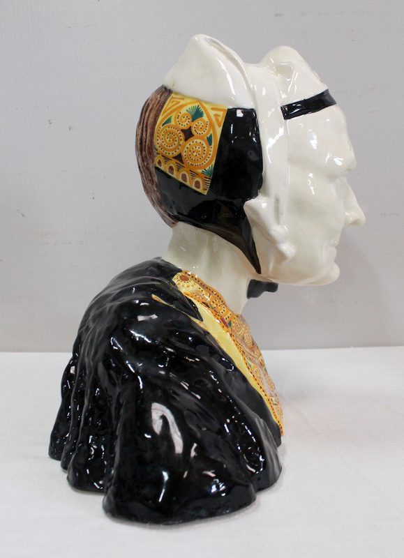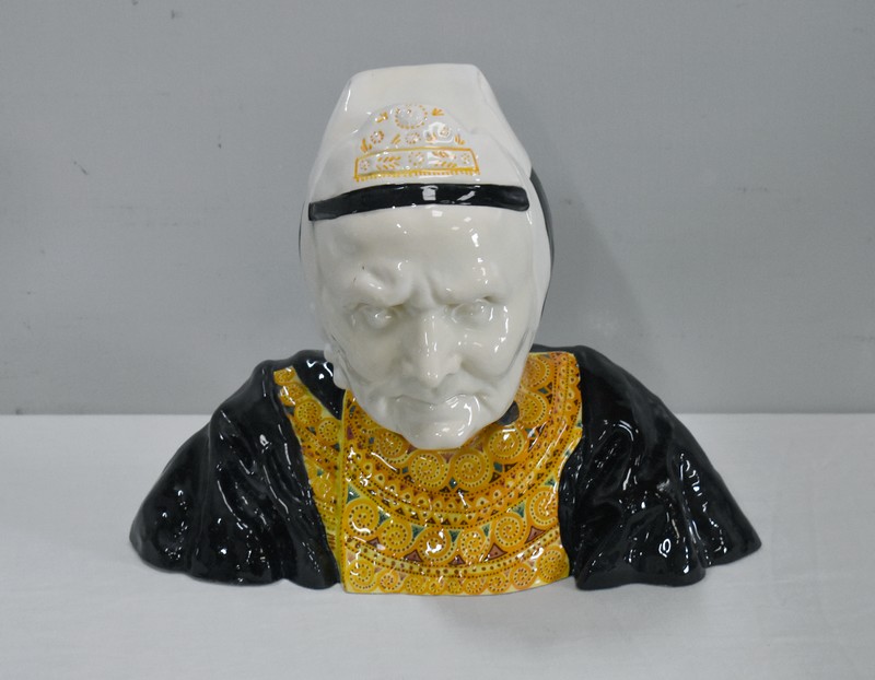 Buste en Faïence Polychrome de la Sculptrice Nantaise Henriette Porson (1874 – 1963), réalisé par l’emblématique manufacture HB, et représentant une grand-mère Bigoudène.
