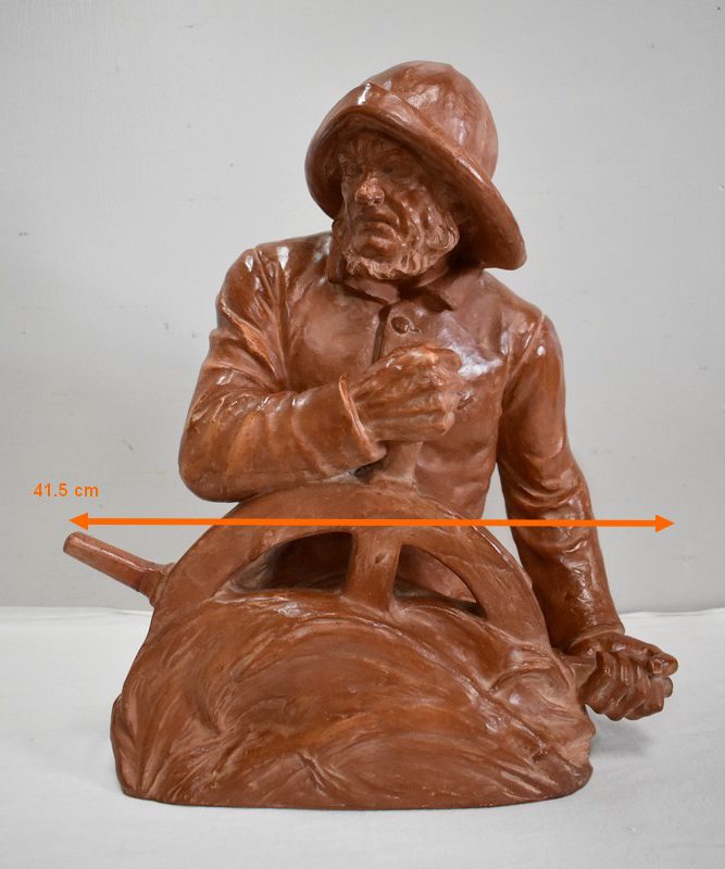 Buste en Terre cuite « Pêcheur à la barre », par L. Morice – Fin XIXe