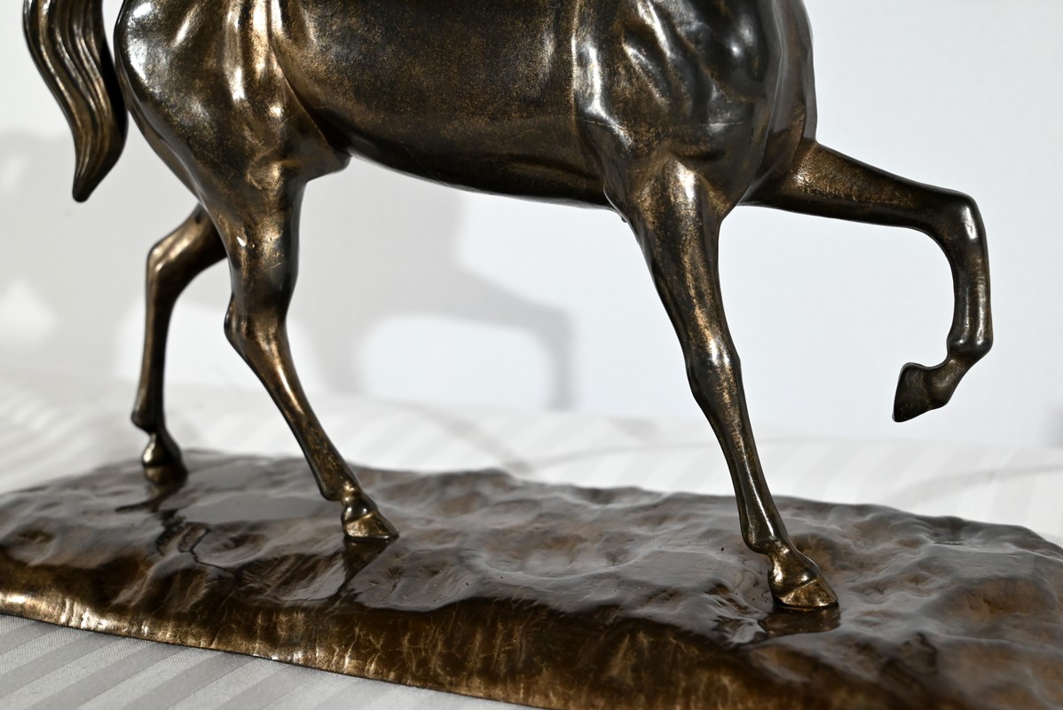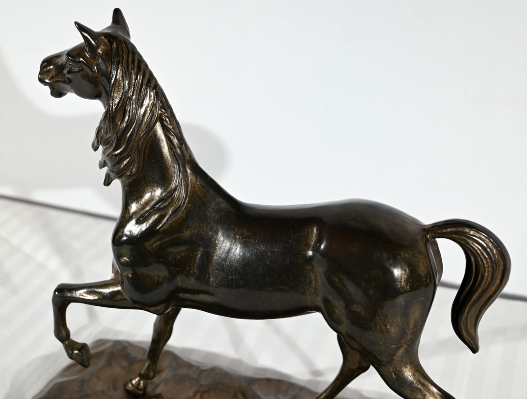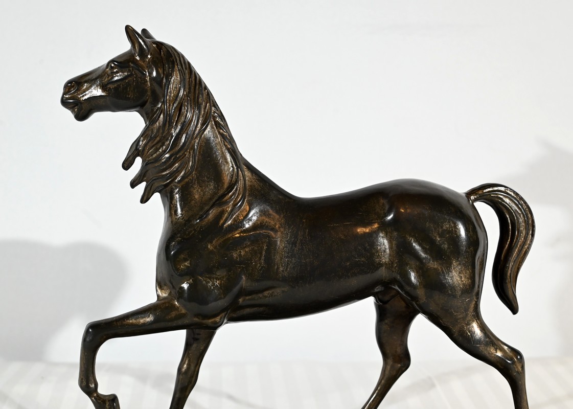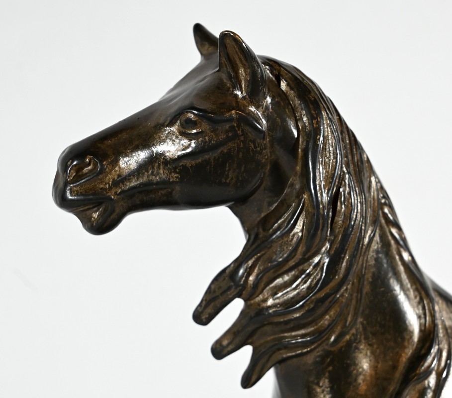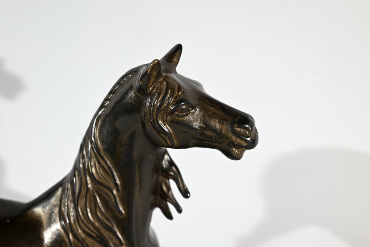 Cheval en régule à patine brune.