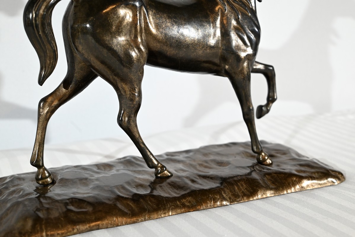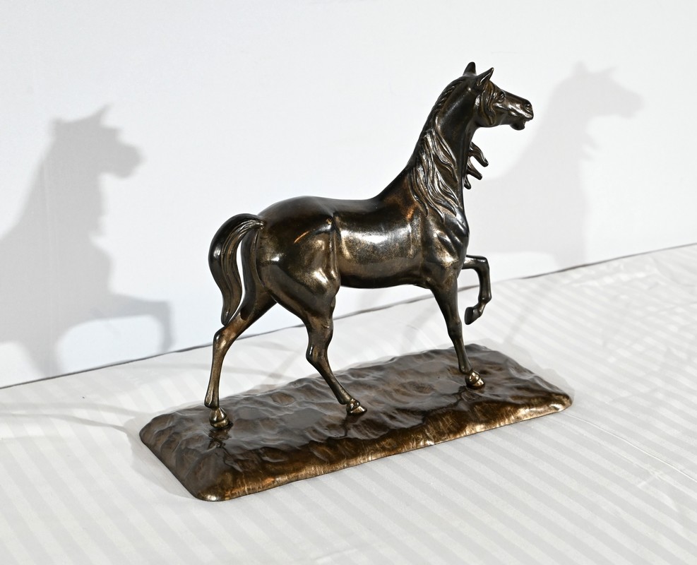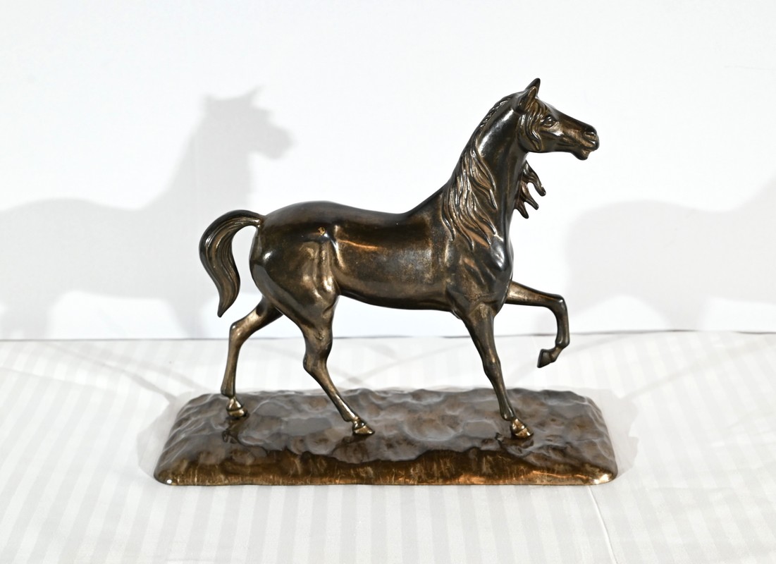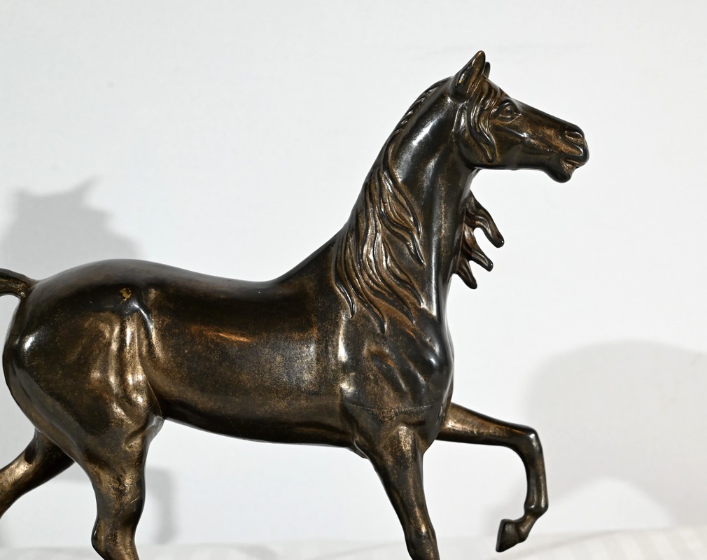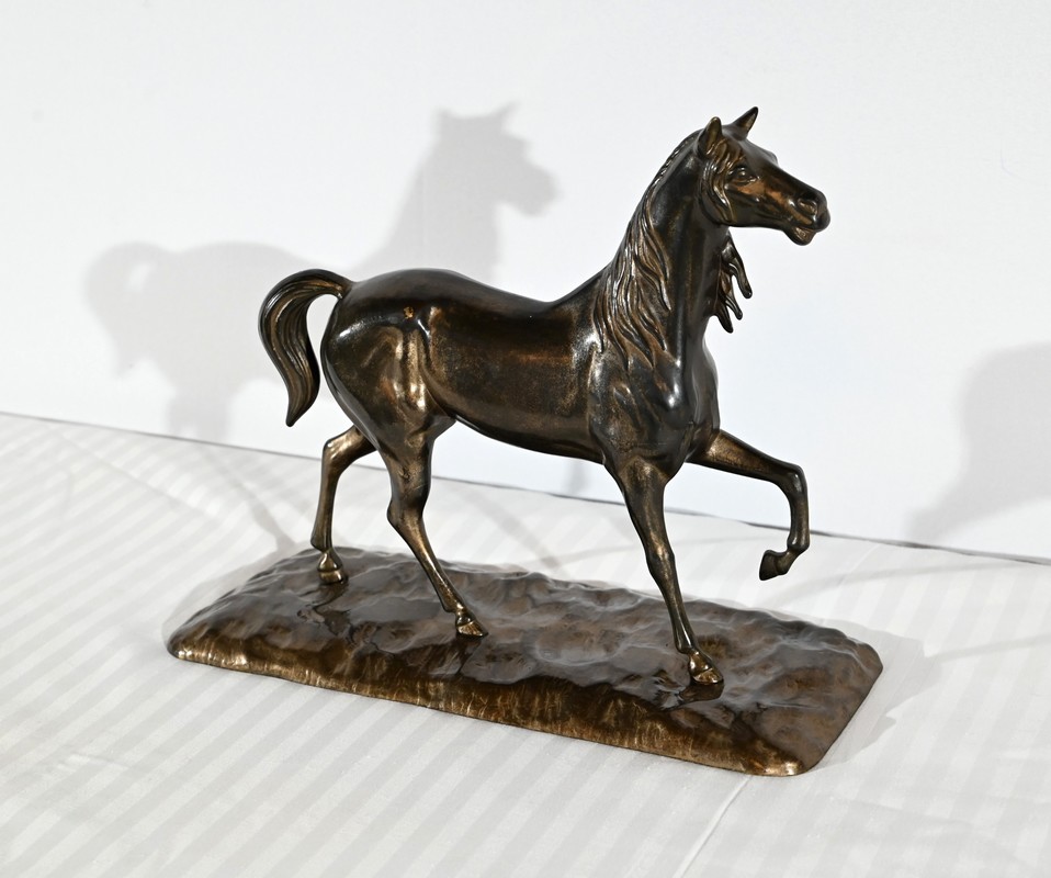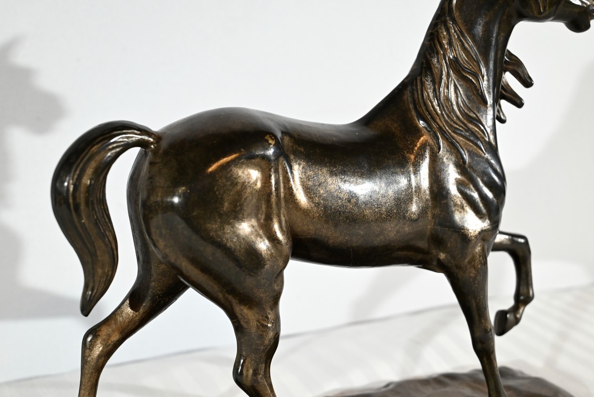 Cheval en régule à patine brune.