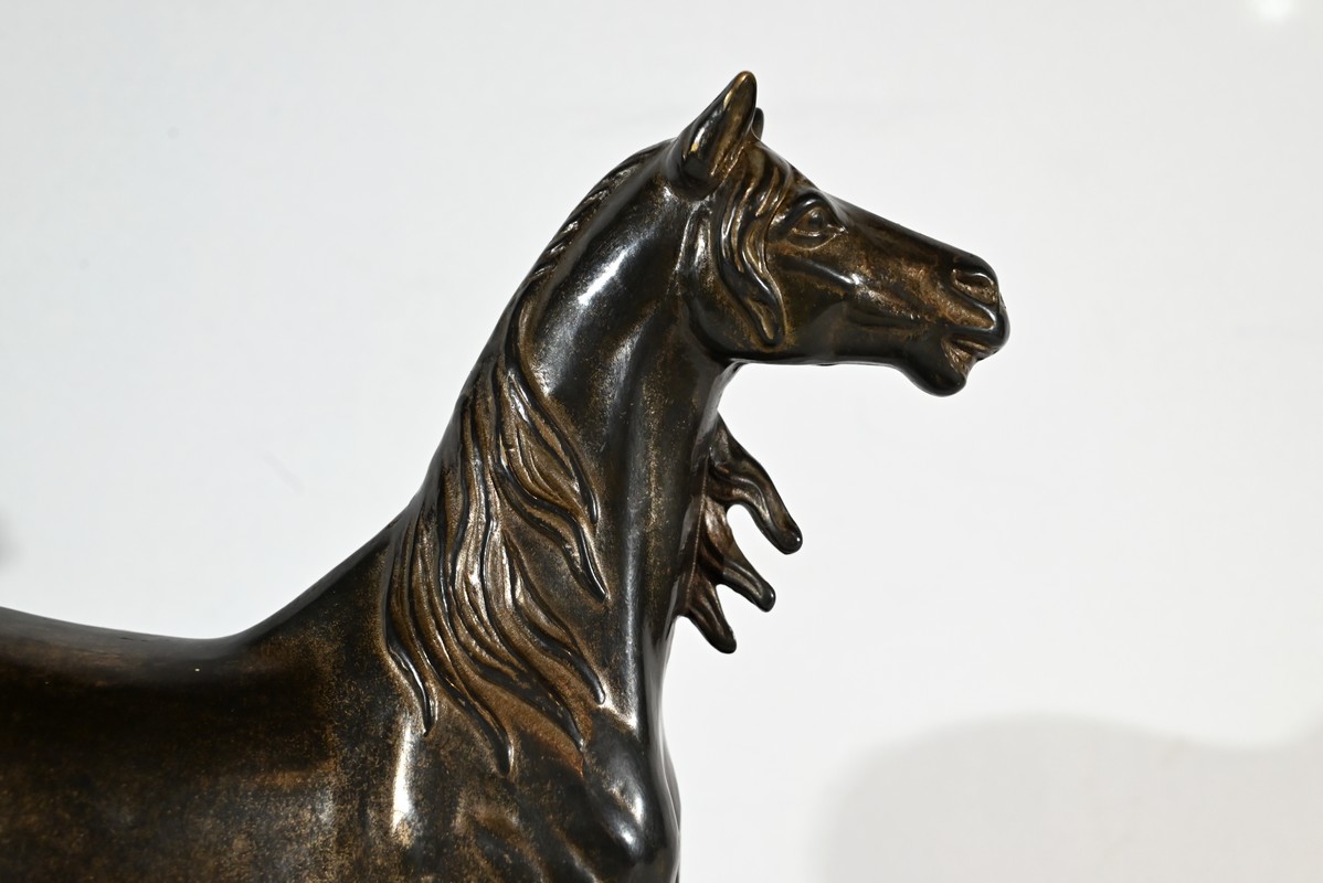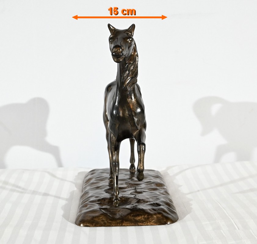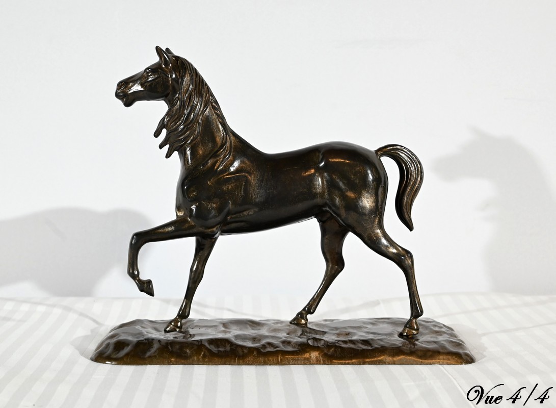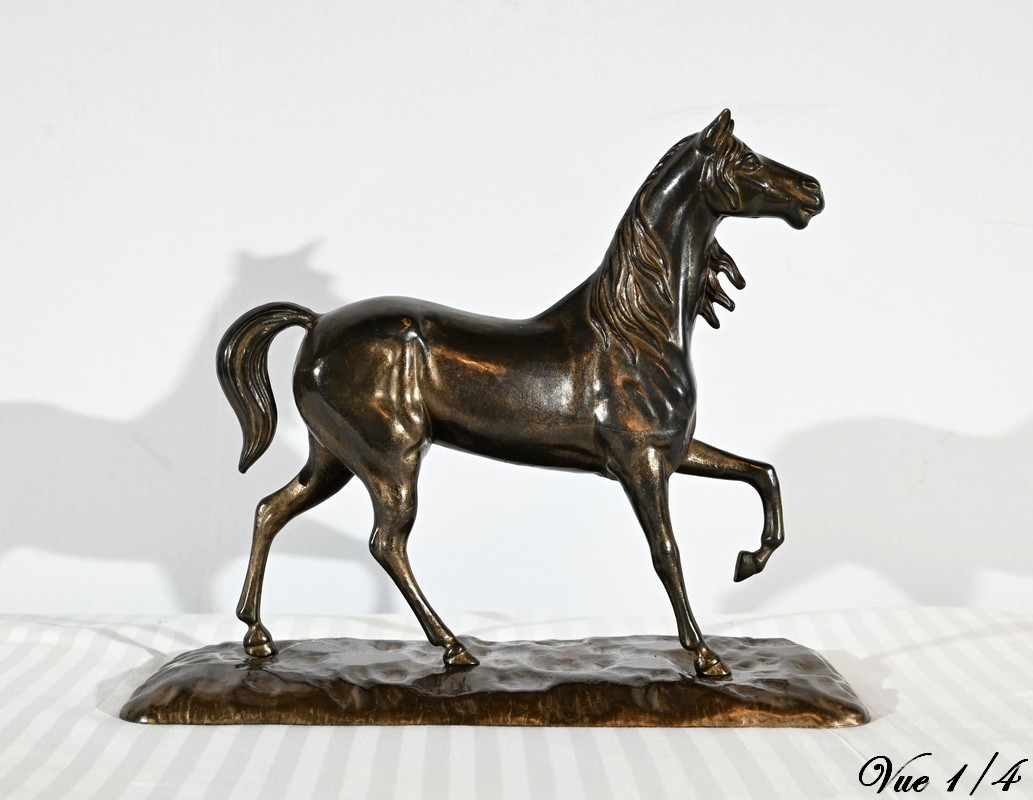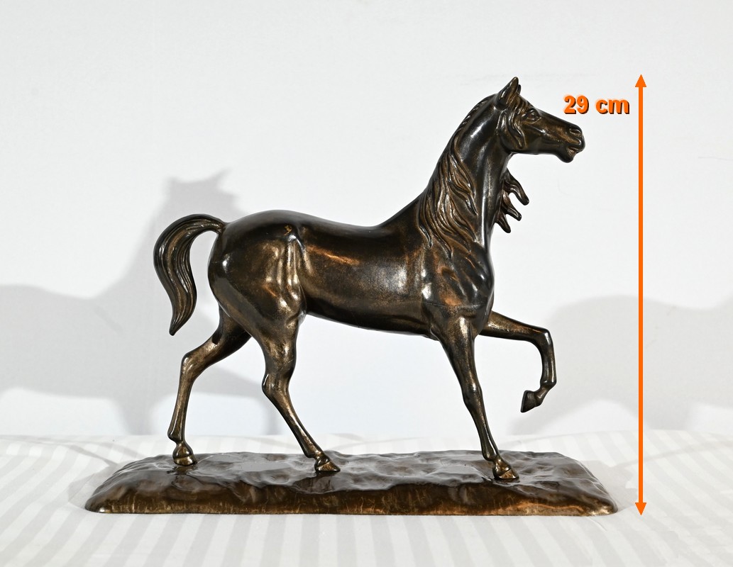 Cheval en régule à patine brune.