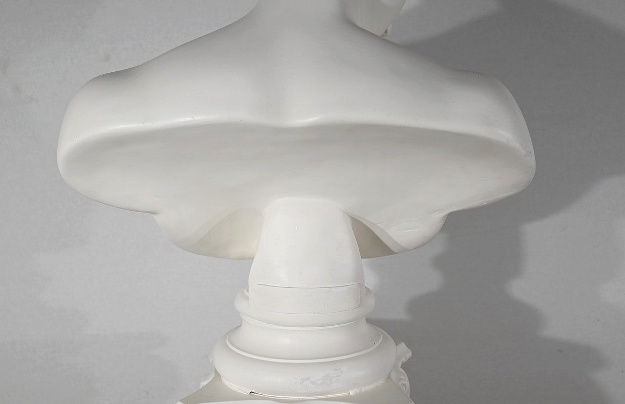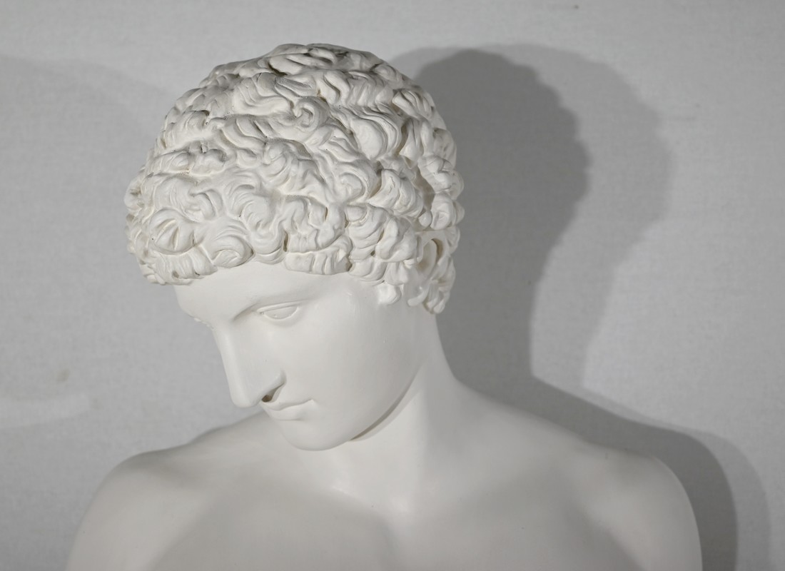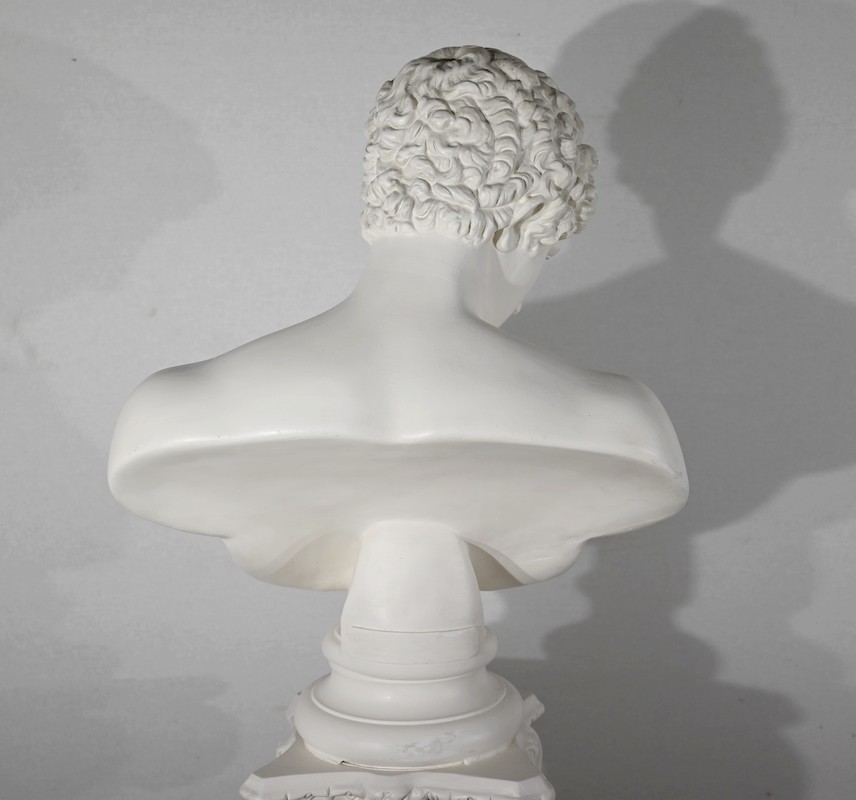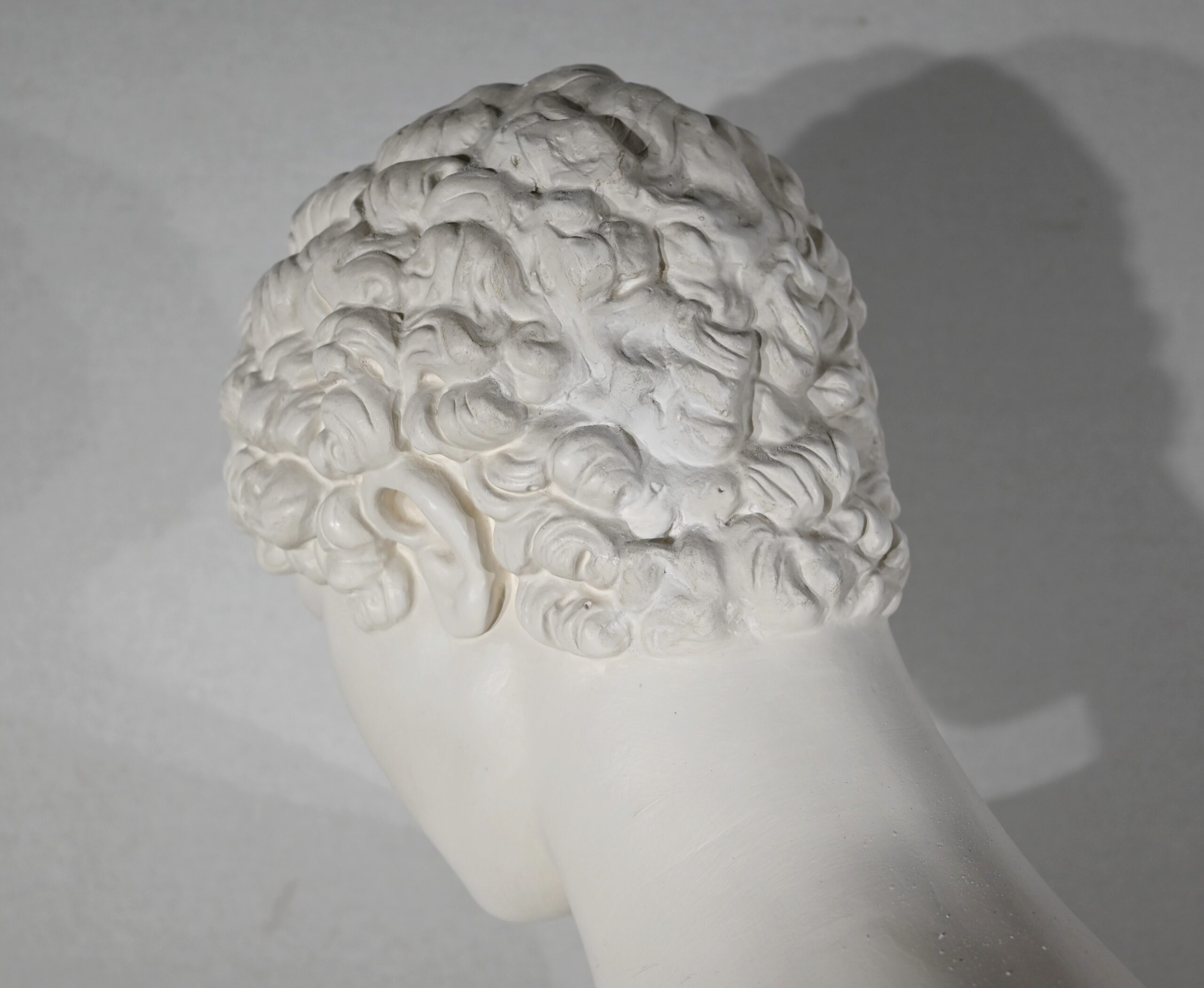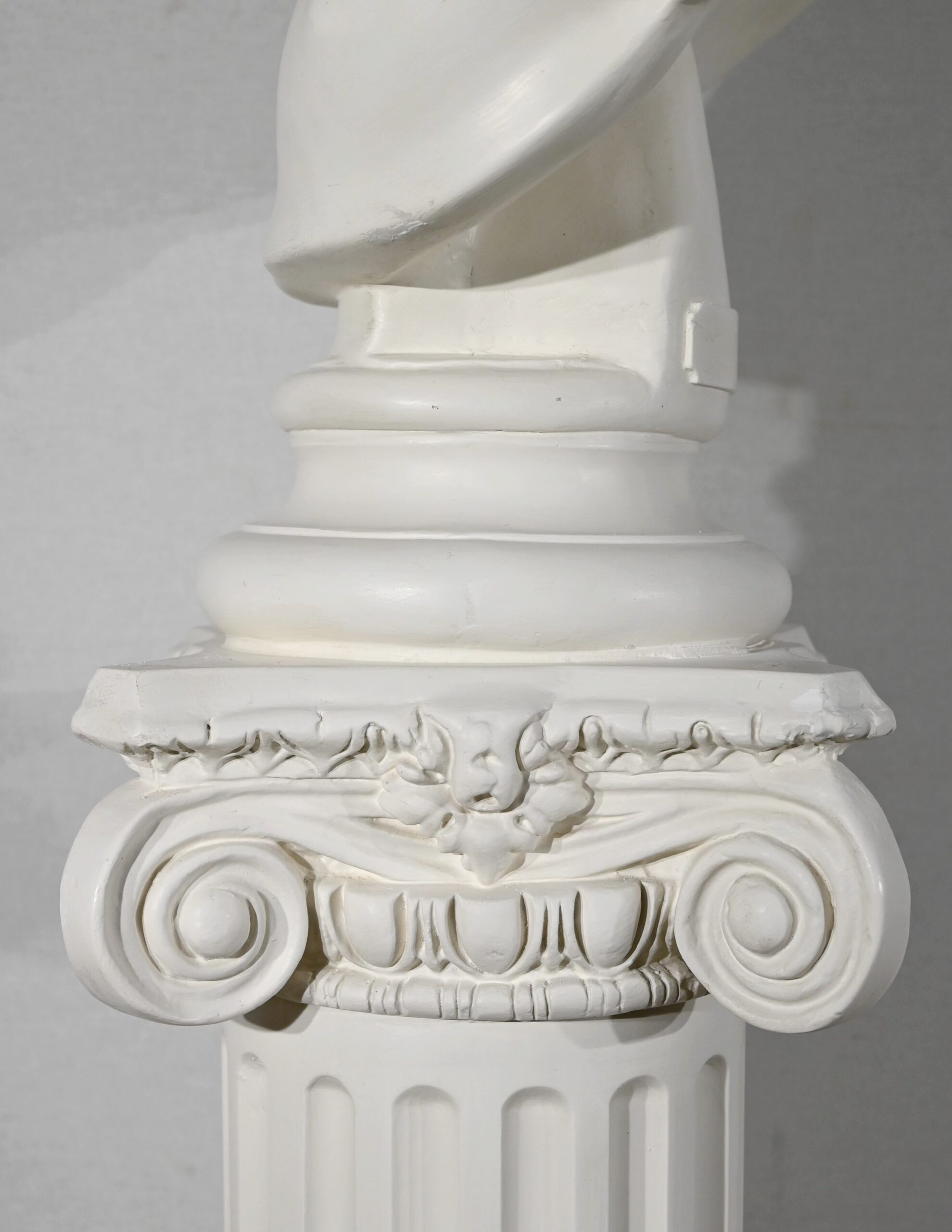 Ensemble en plâtre, buste d’Antinoüs du Capitole sur colonne, sculpté d’un seul bloc.