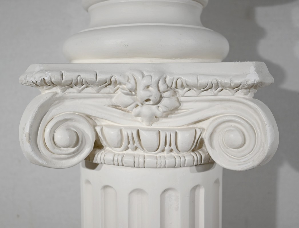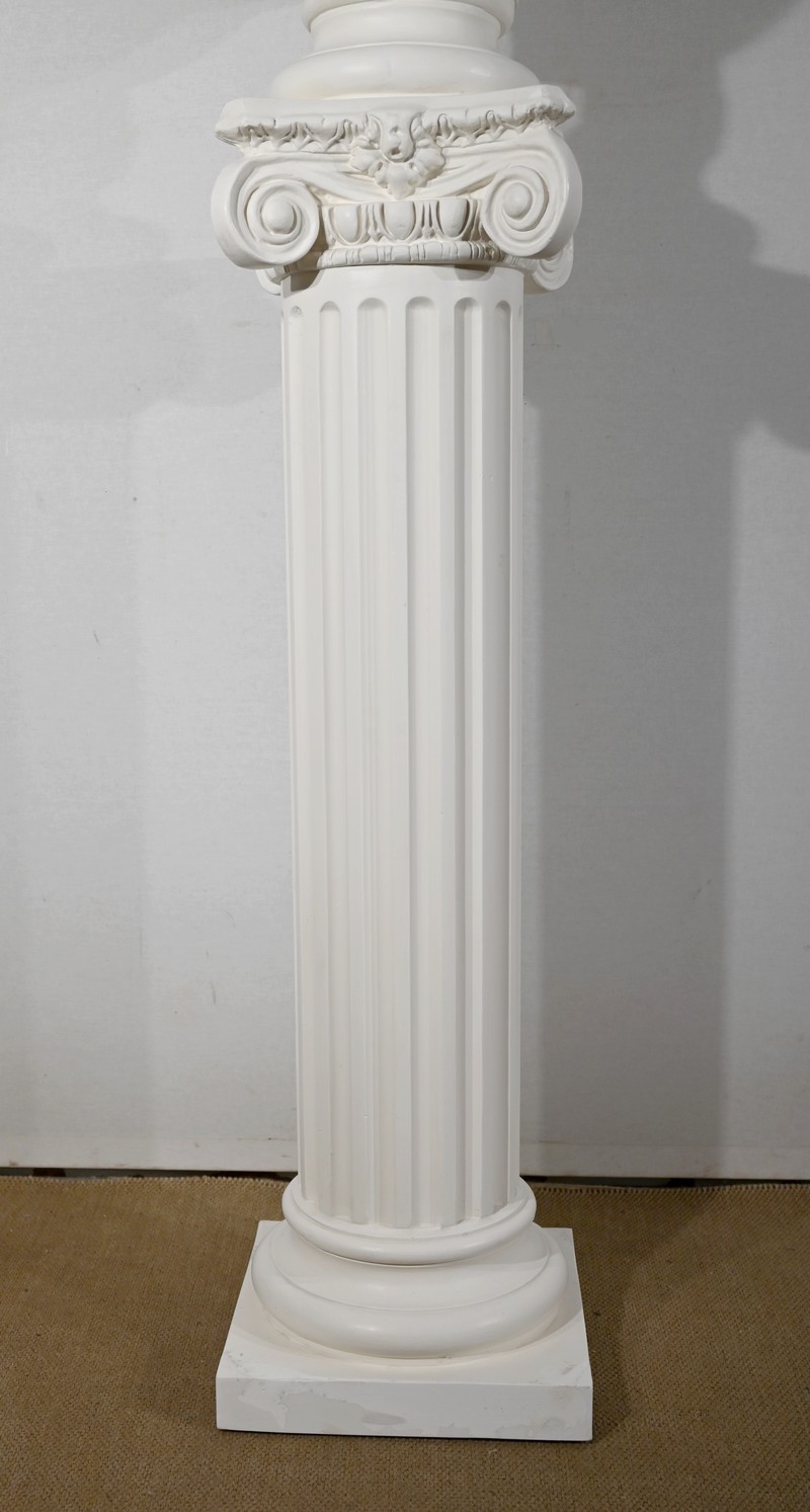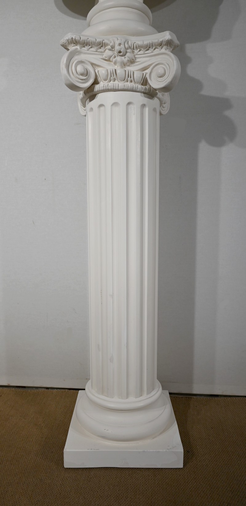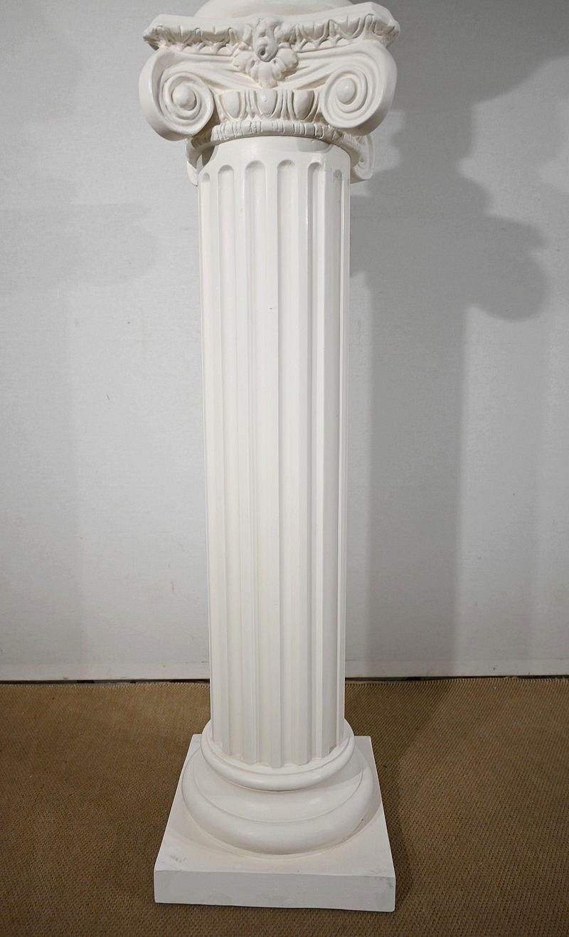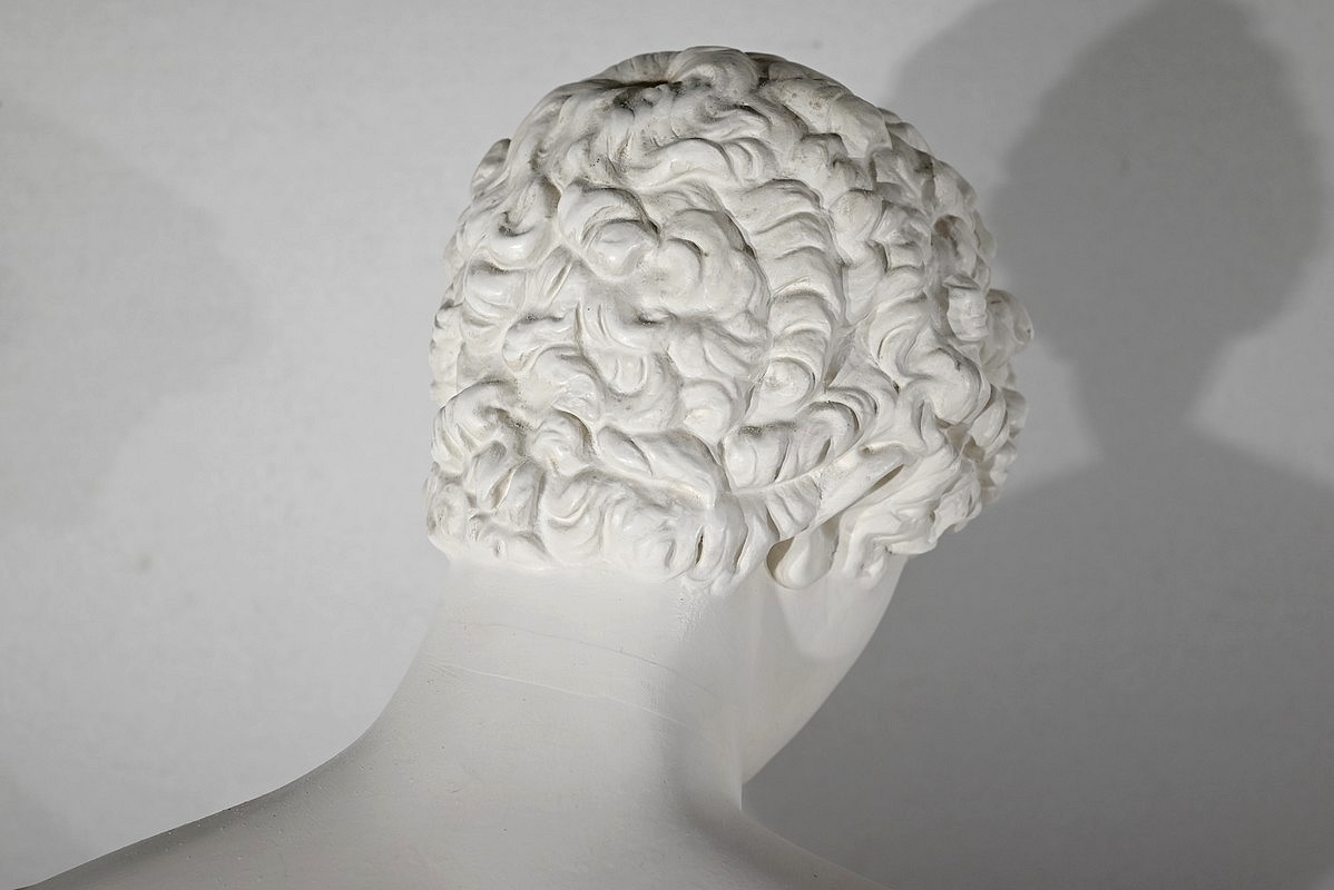 Ensemble en plâtre, buste d’Antinoüs du Capitole sur colonne, sculpté d’un seul bloc.