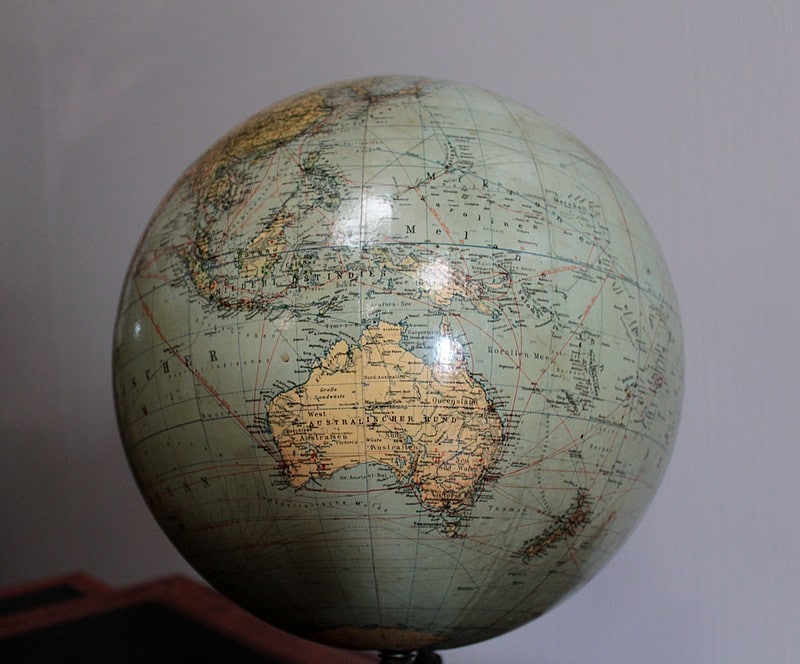 Globe terrestre Columbus Erdglobus Modell 200, à l’échelle 1:40000000, d’origine allemande, signé Columbusverlag Paul Oestergaard K-G.