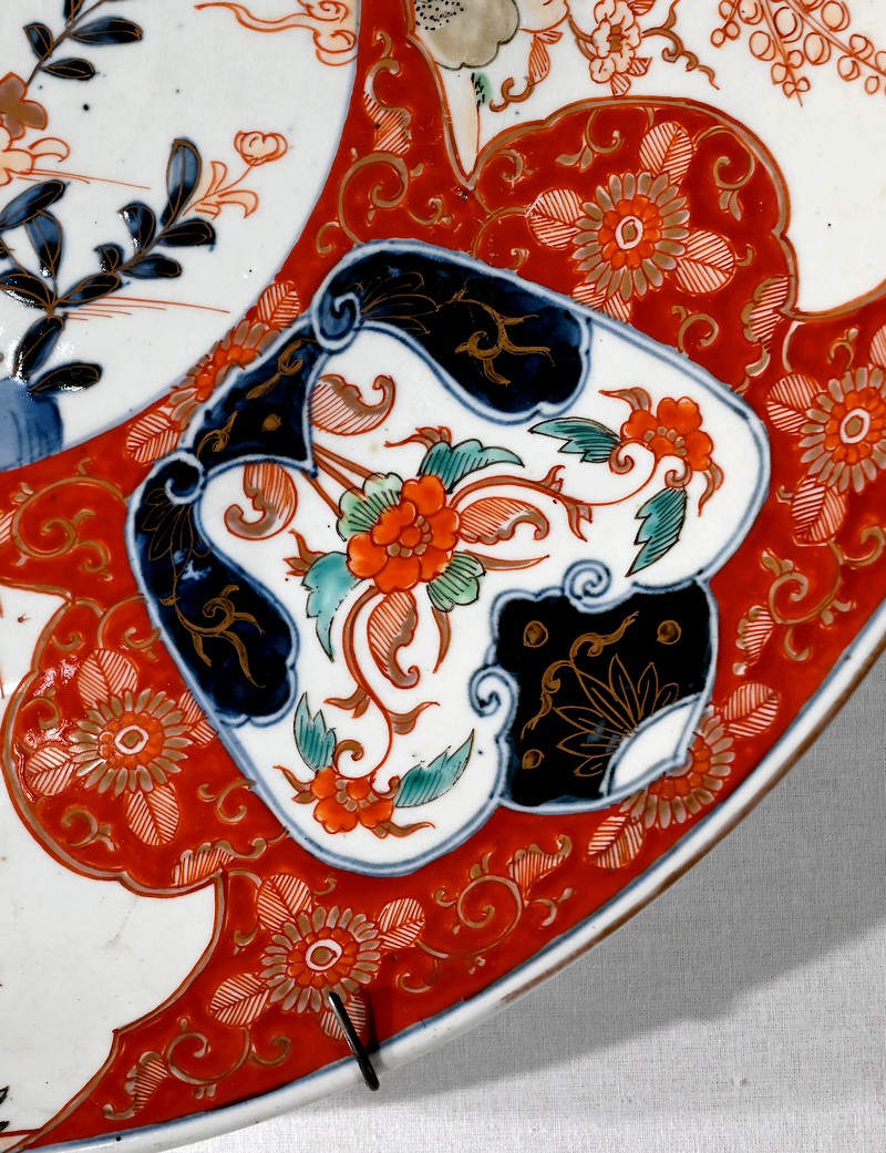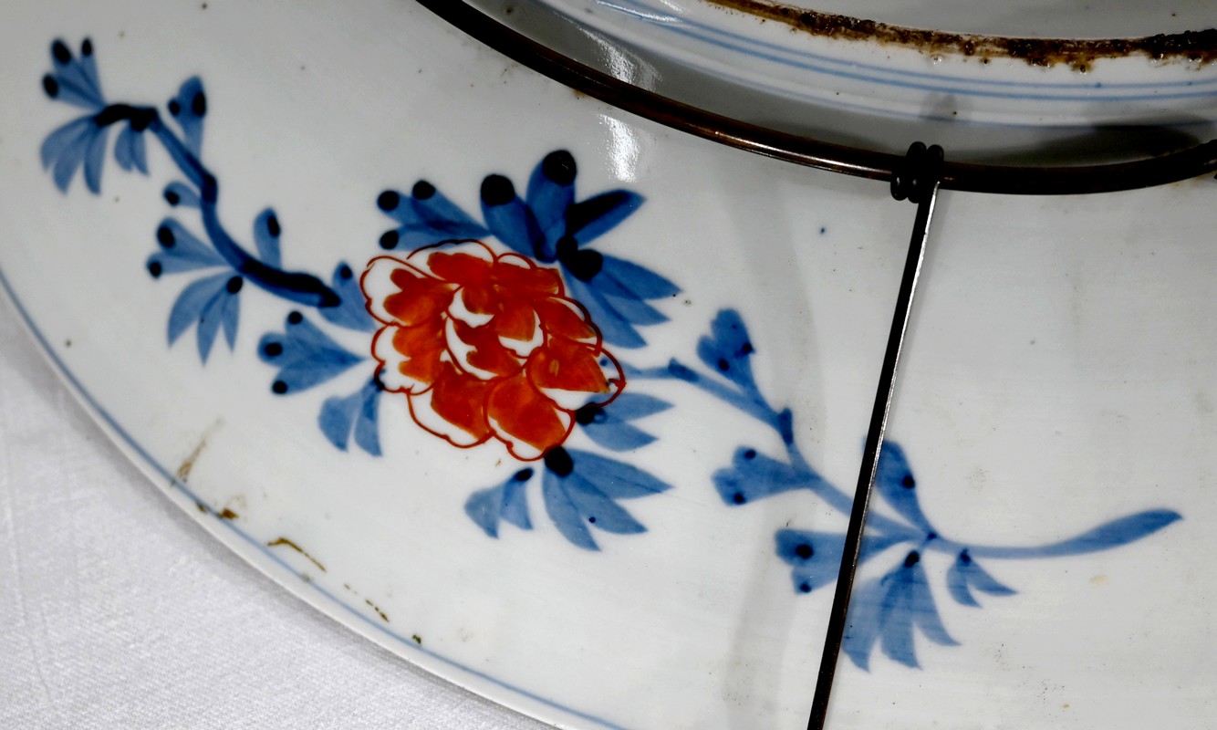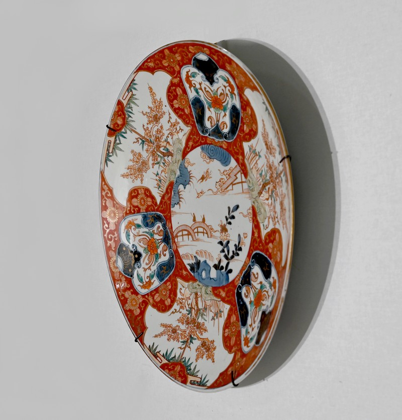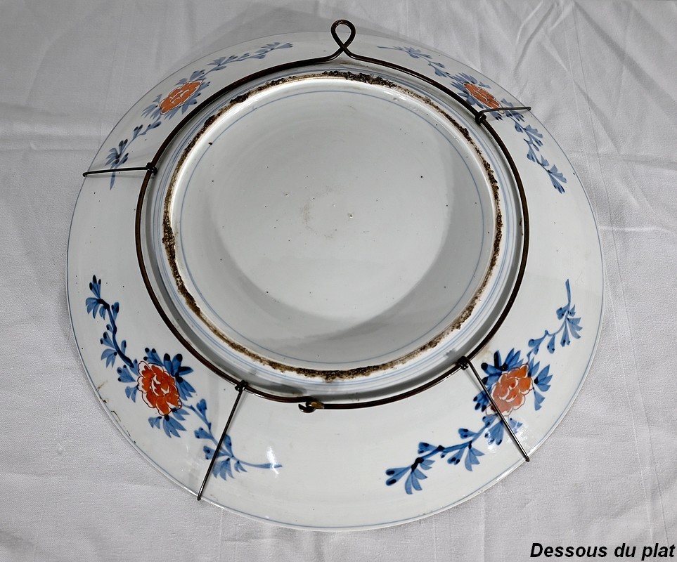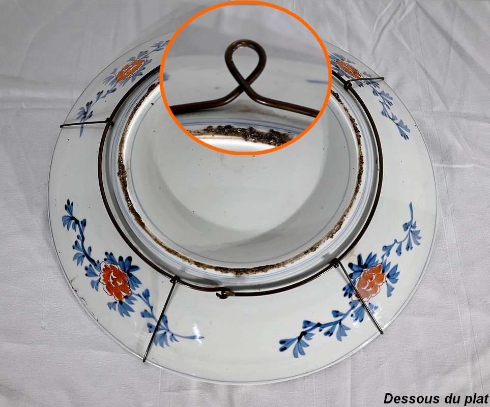 Cet important plat en porcelaine qui bénéficié d’une accroche mural à trois points ravira, entre autres, les amateurs d’art asiatique.