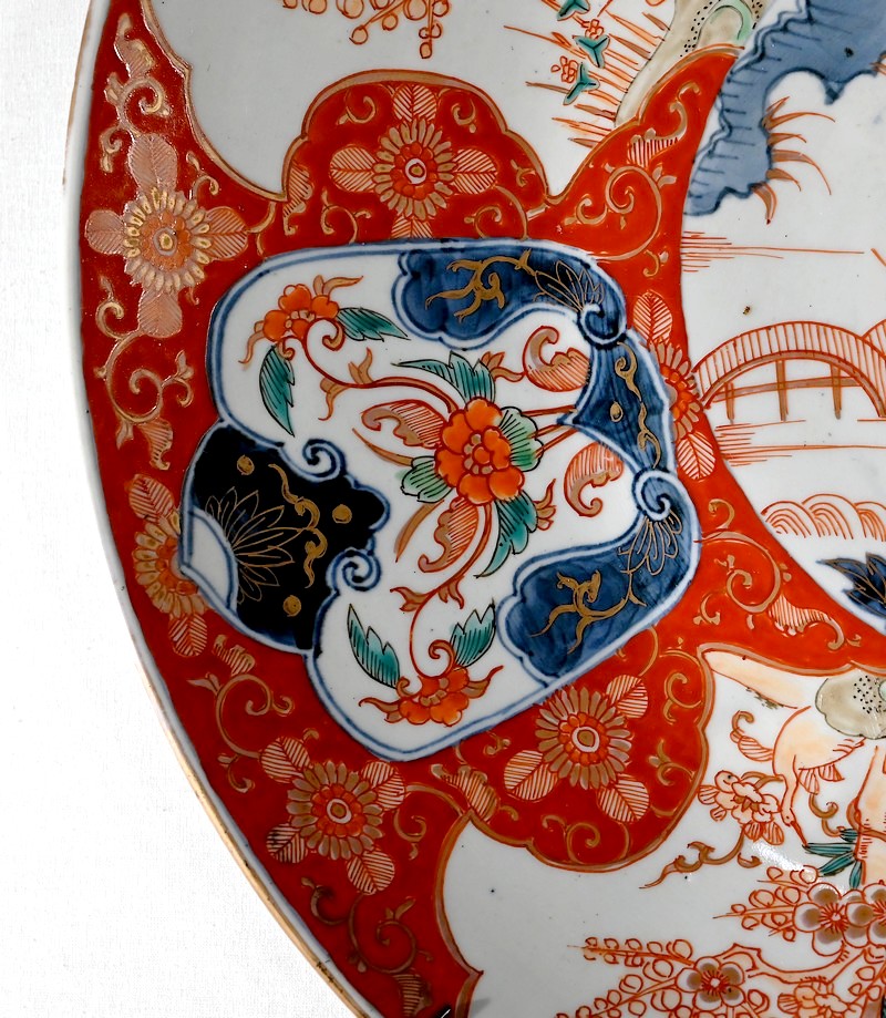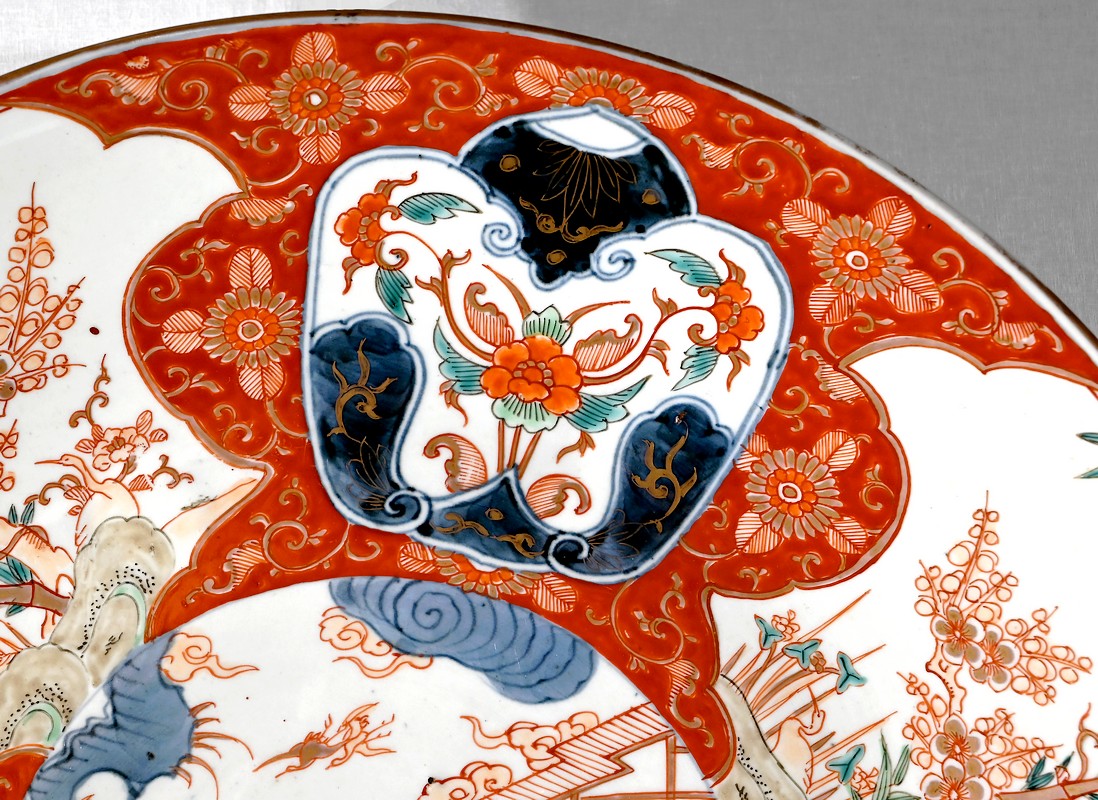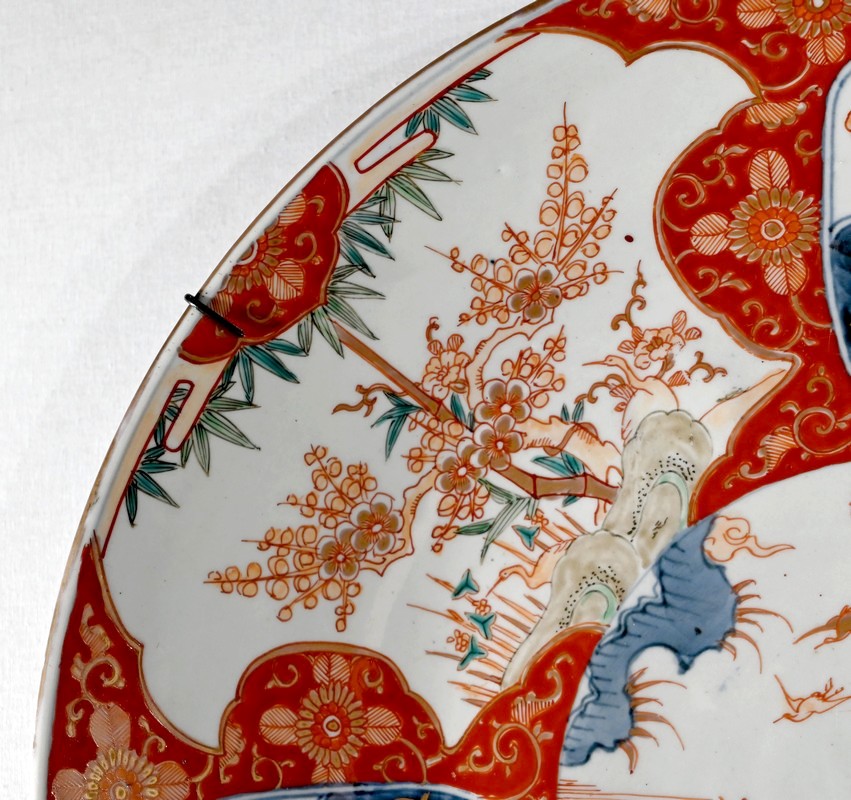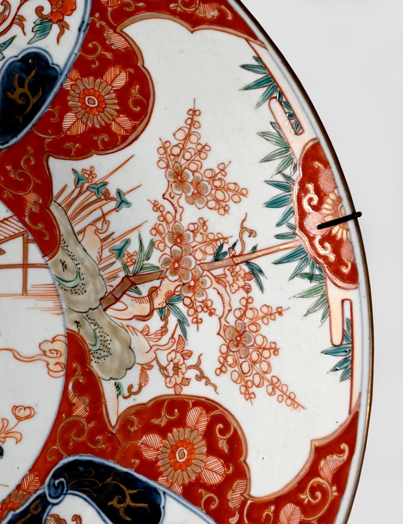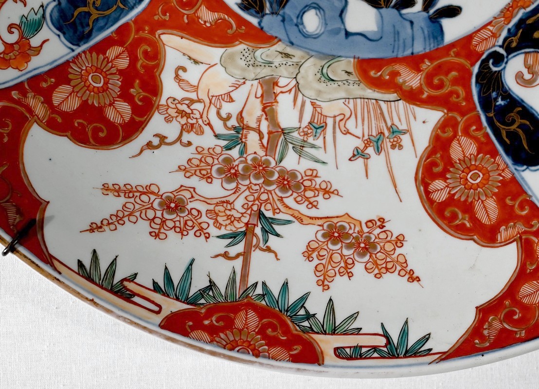 Cet important plat en porcelaine qui bénéficié d’une accroche mural à trois points ravira, entre autres, les amateurs d’art asiatique.