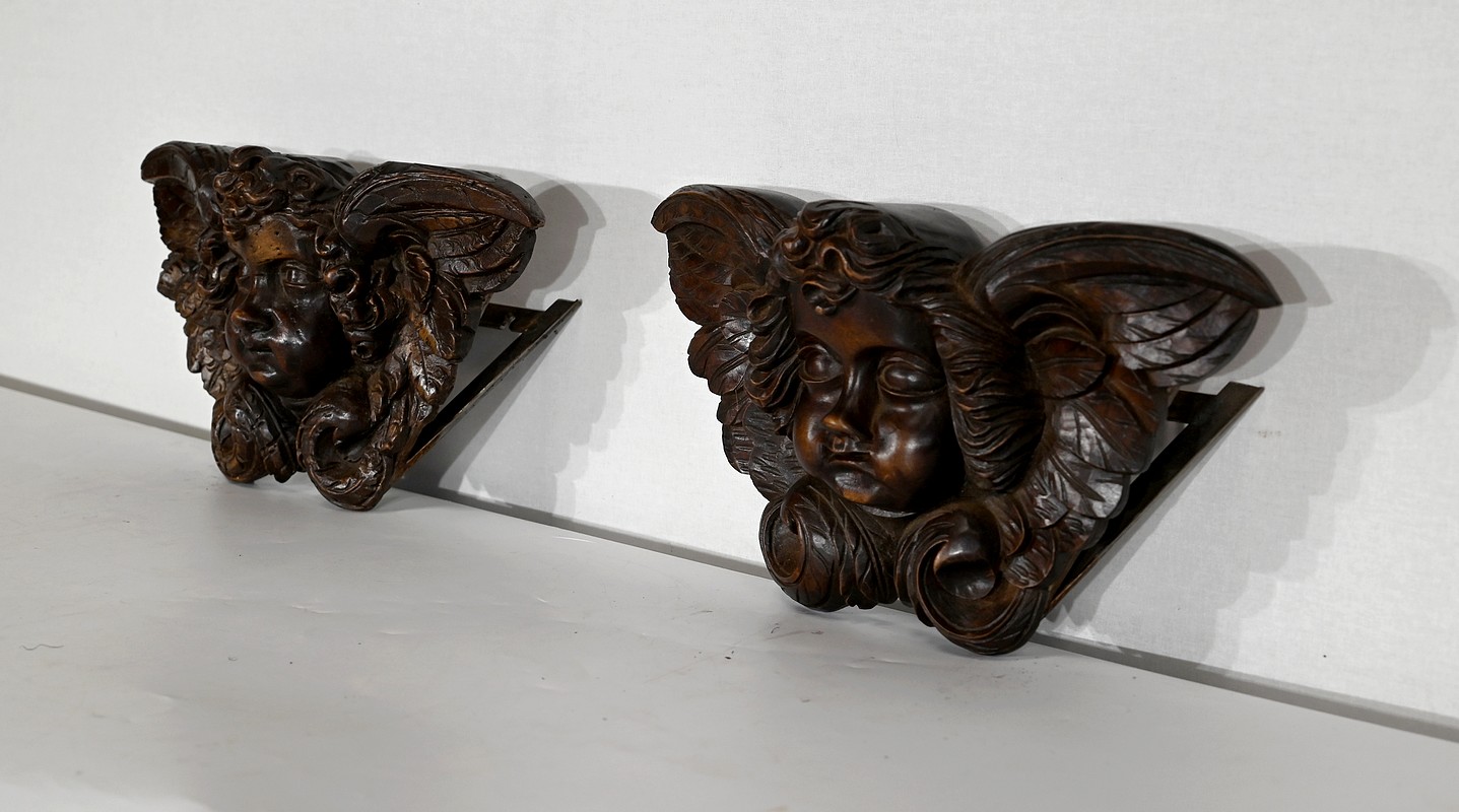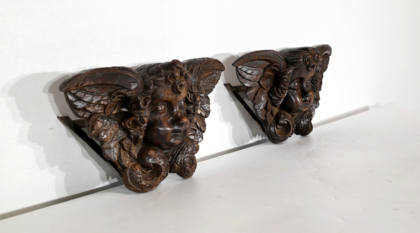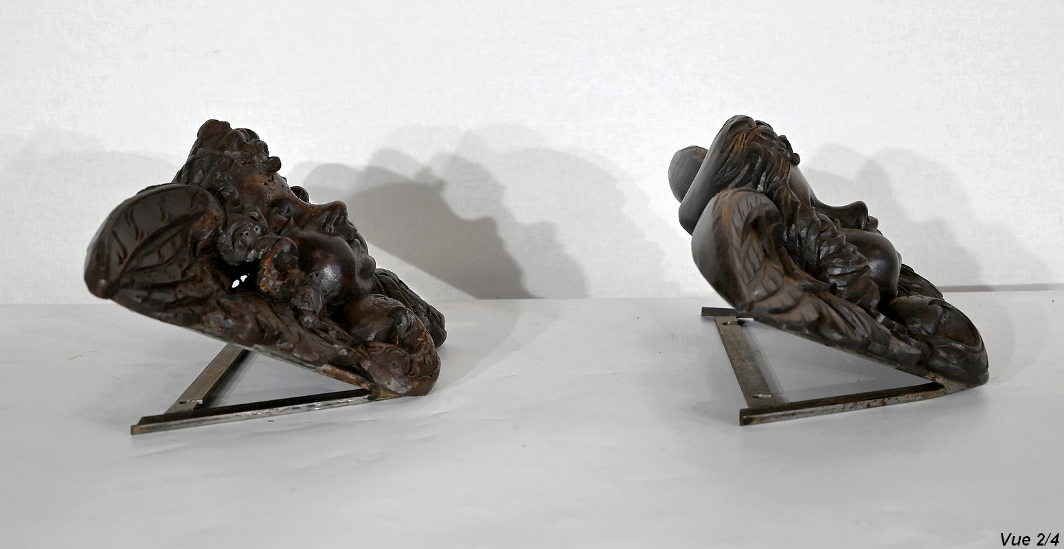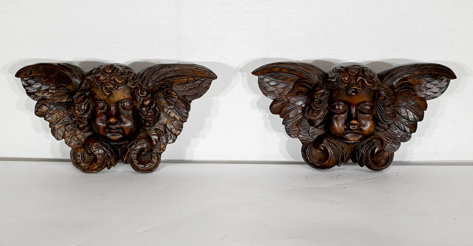 Paire d’Angelots en Bois Sculpté – Fin XIXe