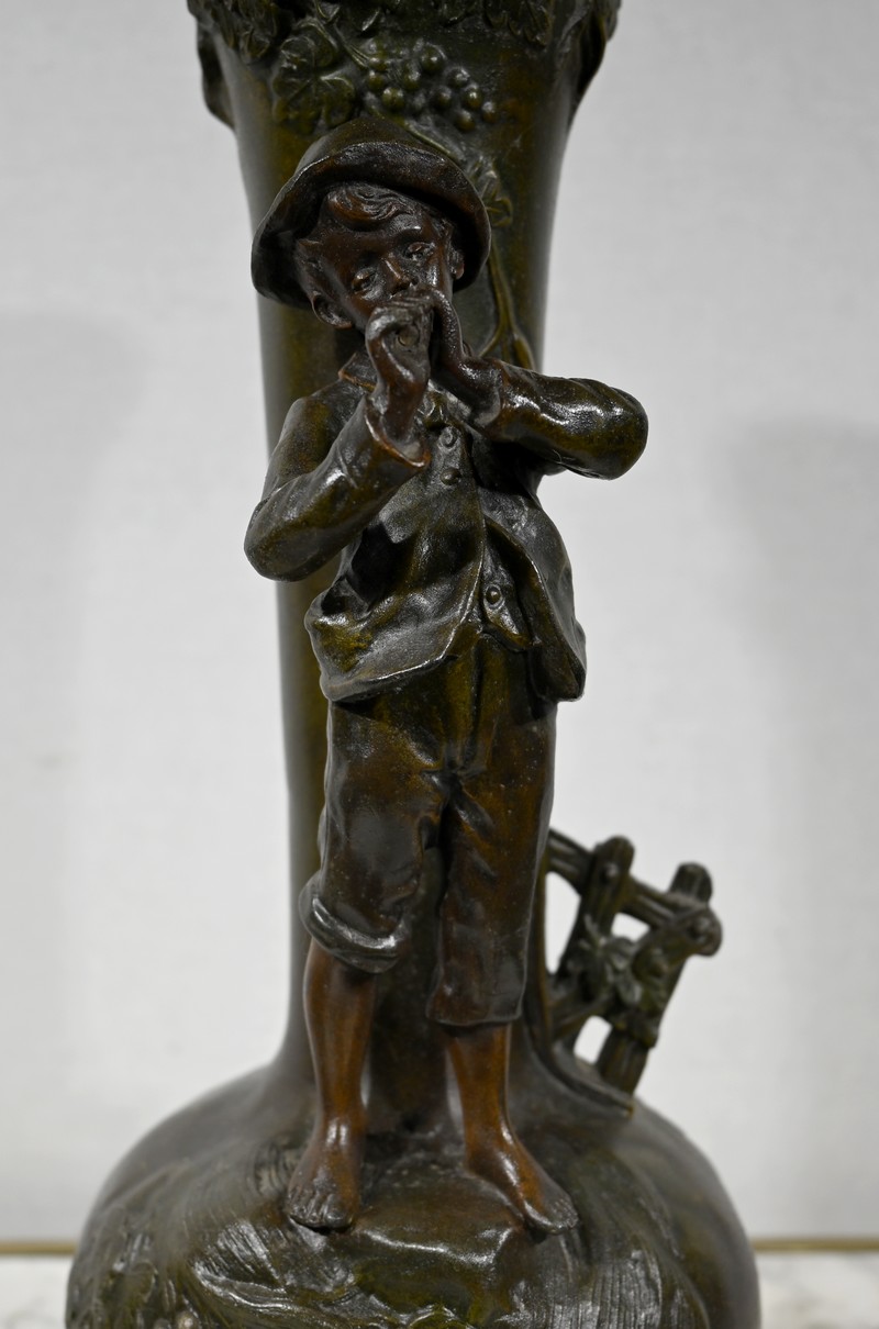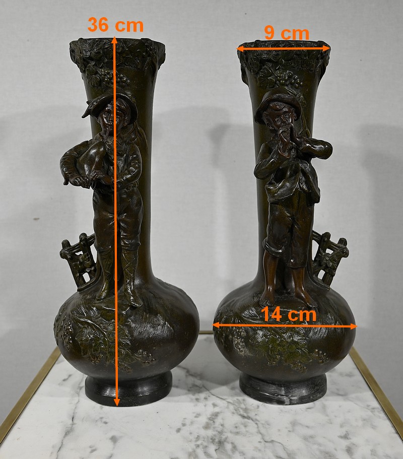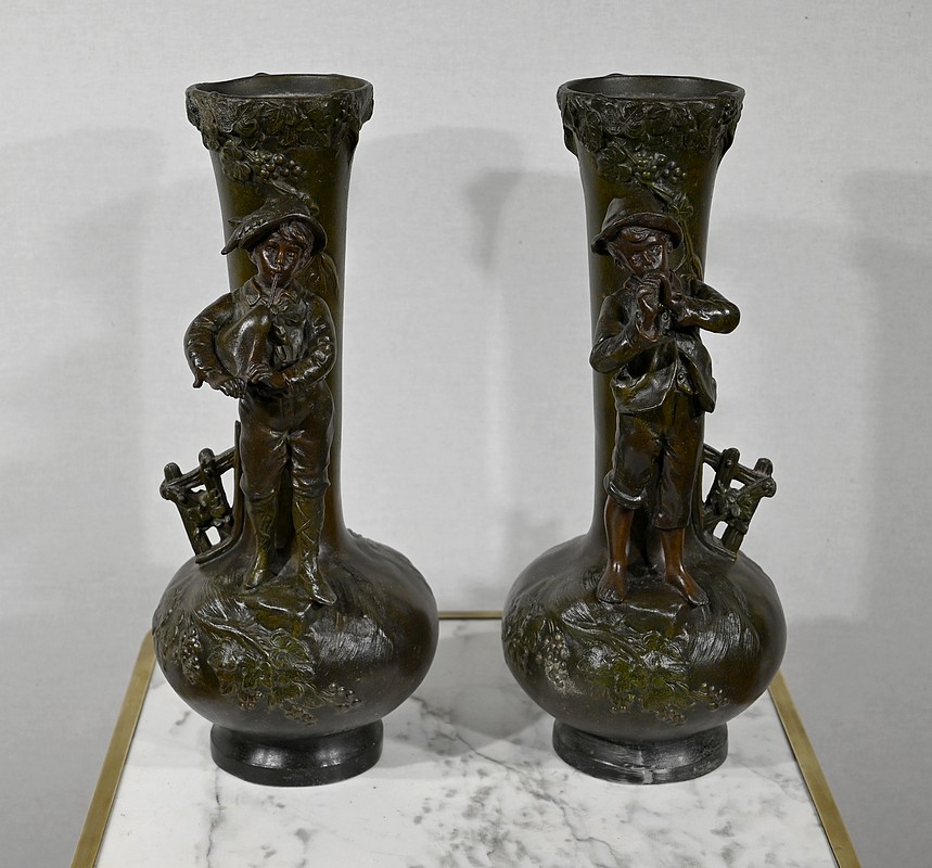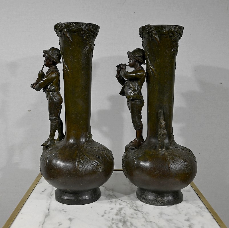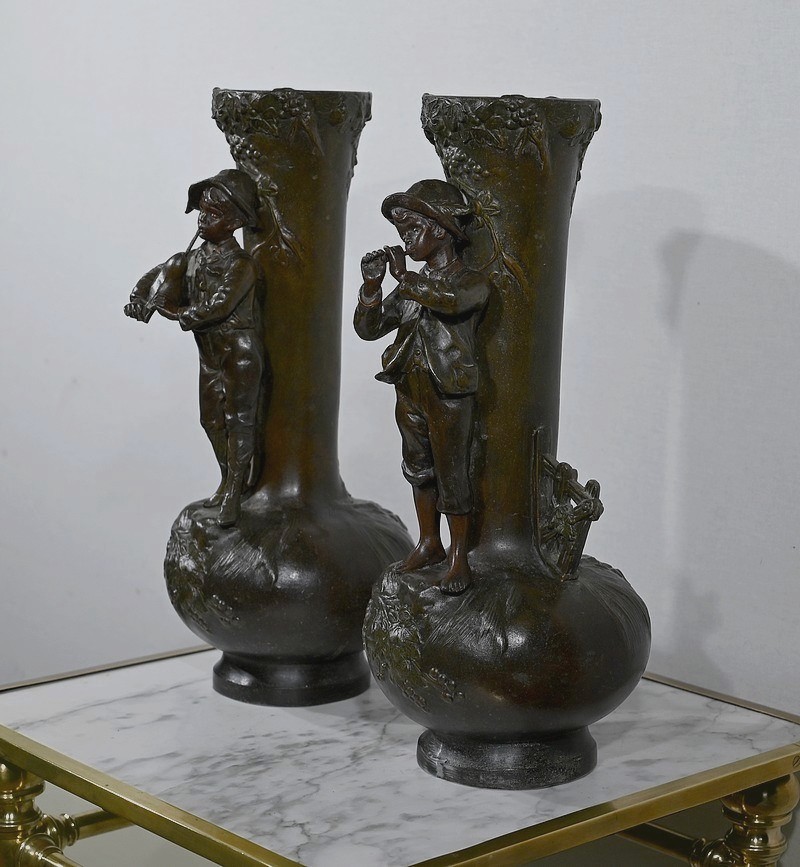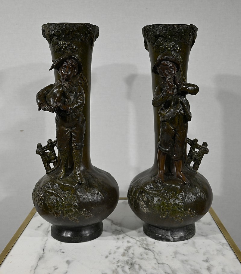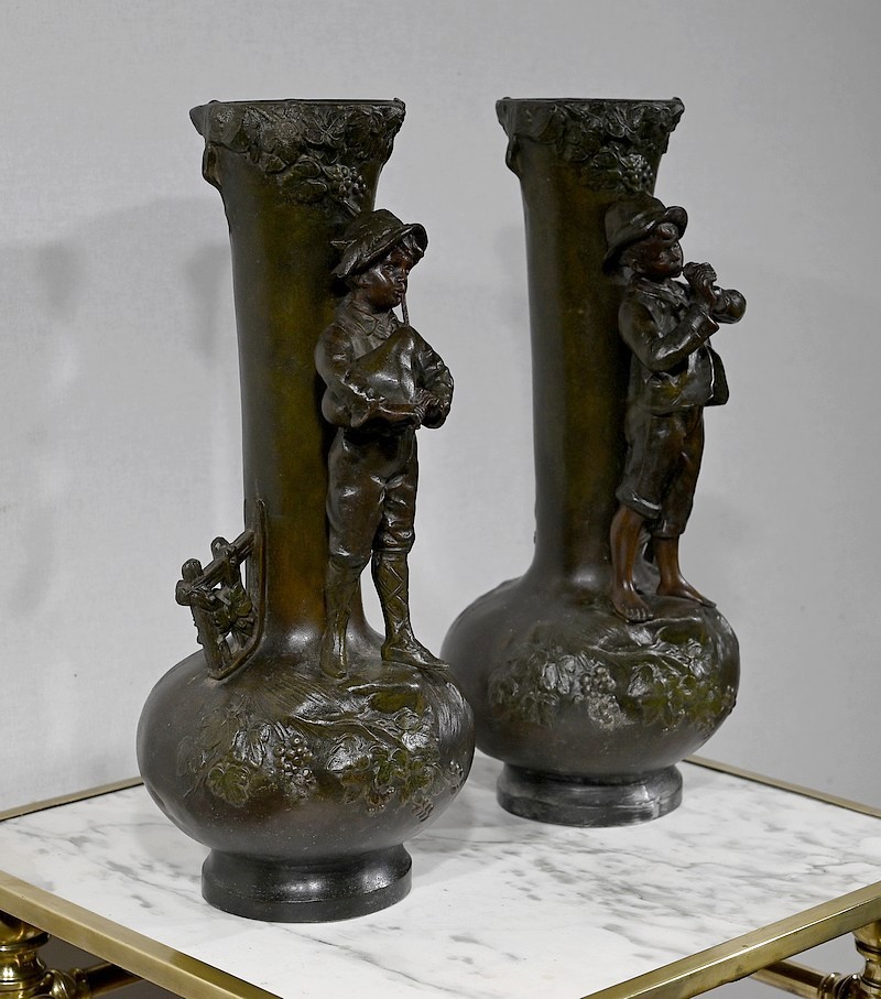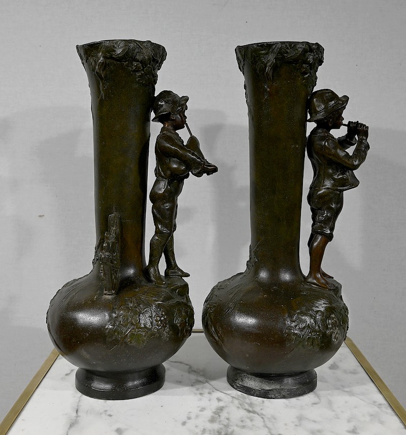 Paire de Vases en Régule « Enfants musiciens », d’après A. Moreau – Fin XIXe