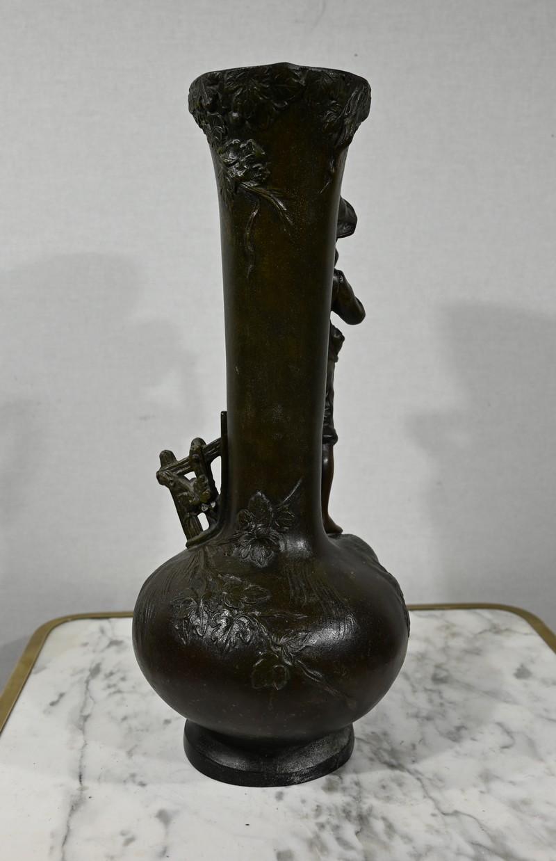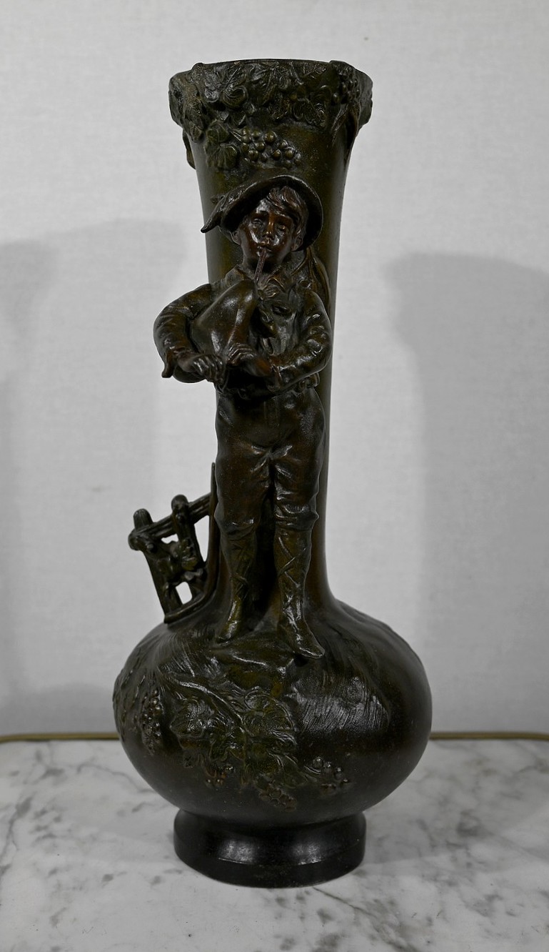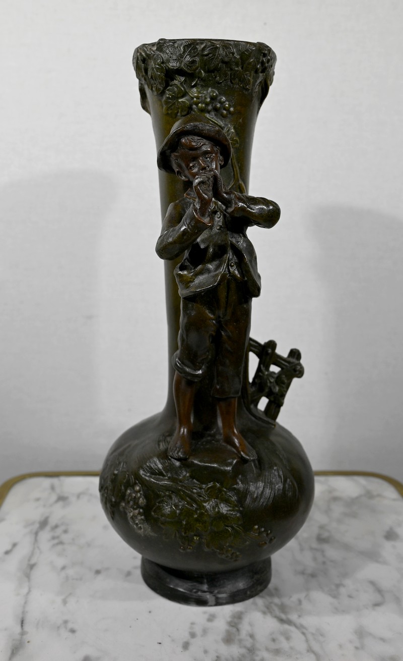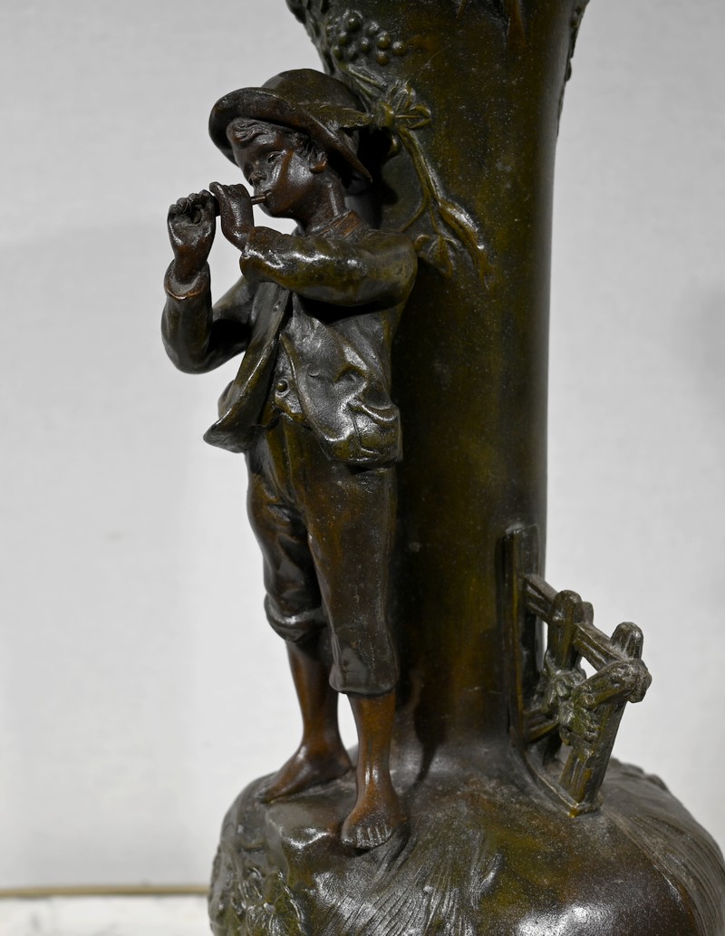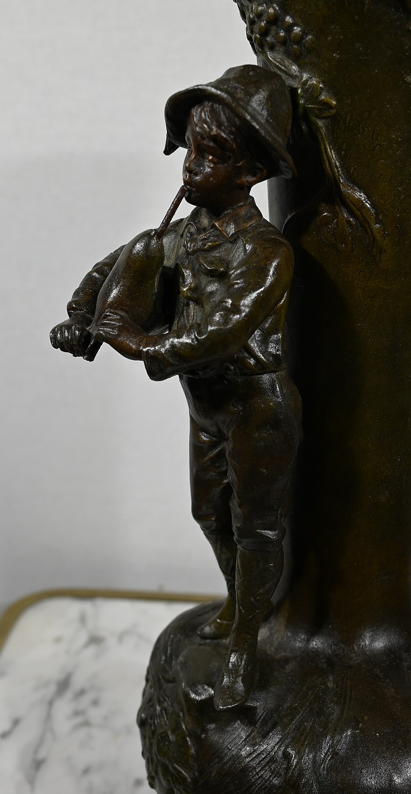 Paire de Vases en Régule « Enfants musiciens », d’après A. Moreau – Fin XIXe