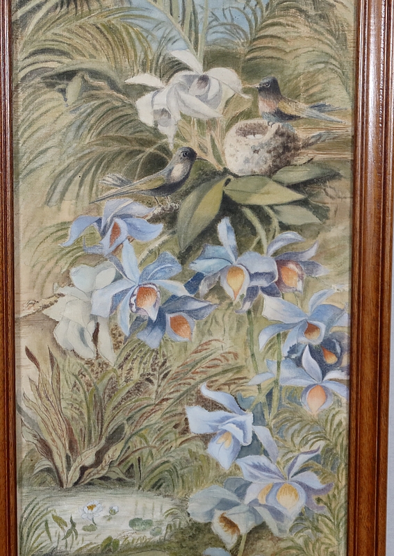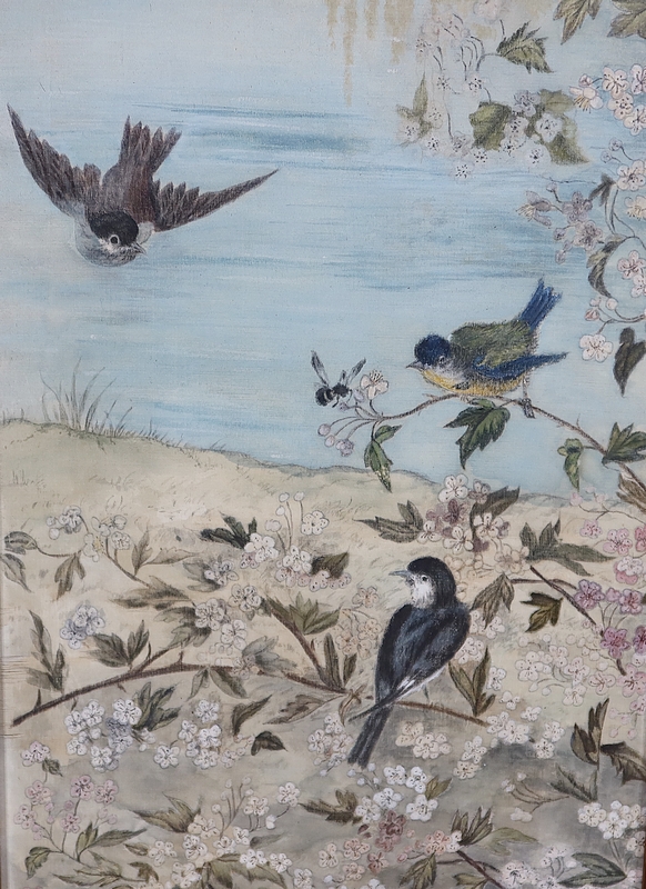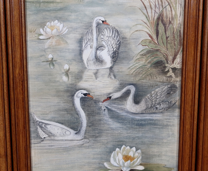 Les intérieurs sont habillés de soie peinte illustrant des oiseaux prenant place dans des paysages différents. Dans chaque scénette, nous retrouvons des perruches, des cygnes et des mésanges, entourées de fleurs.