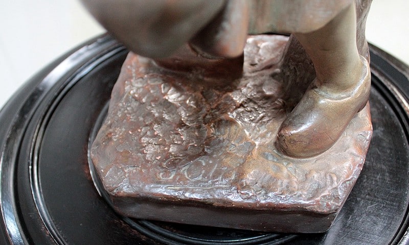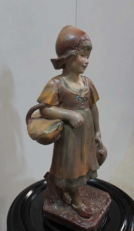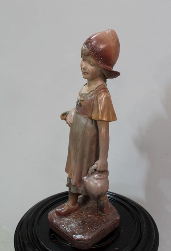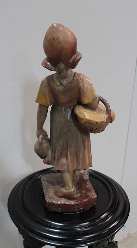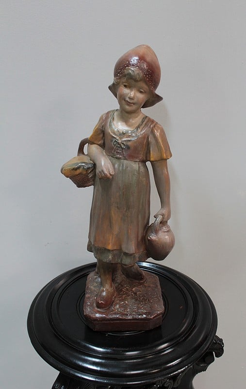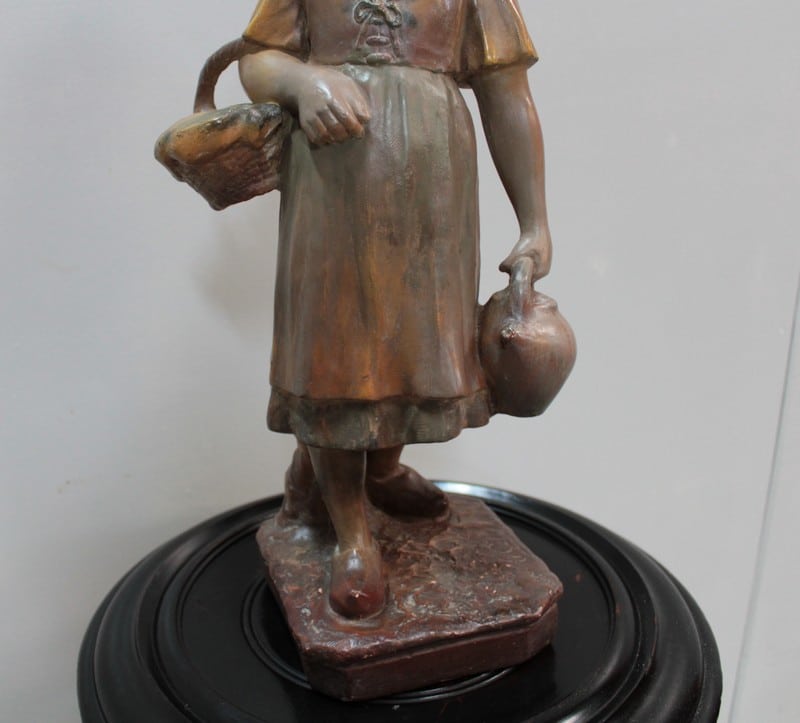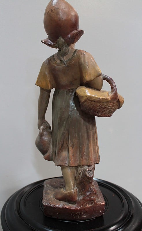 ‘Fillette hollandaise au panier et à la cruche’ en plâtre patiné.
