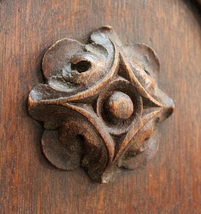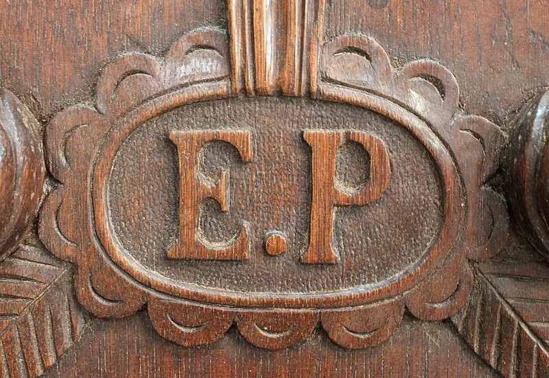 Au centre, les lettres ‘E.P’ sont marquées dans le Bois et encerclées d’une frise. Probable qu’il y a un siècle, le premier propriétaire de ce bien ai souhaité y voir gravé ses initiales.