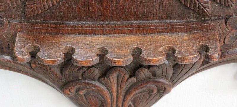 Ce Porte Pipes généreusement mouvementé et richement sculpté constitue un élément de Décoration étonnant. On pourra peut-être même lui trouver un nouveau rôle, tel celui de Porte Fléchettes à côté d’une cible par exemple. A moins qu’un Fumeur ou qu’un collectionneur ne lui redonne sa fonction originelle… qui sait !
