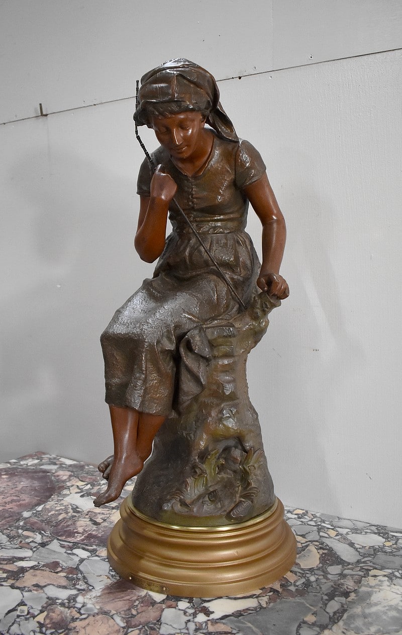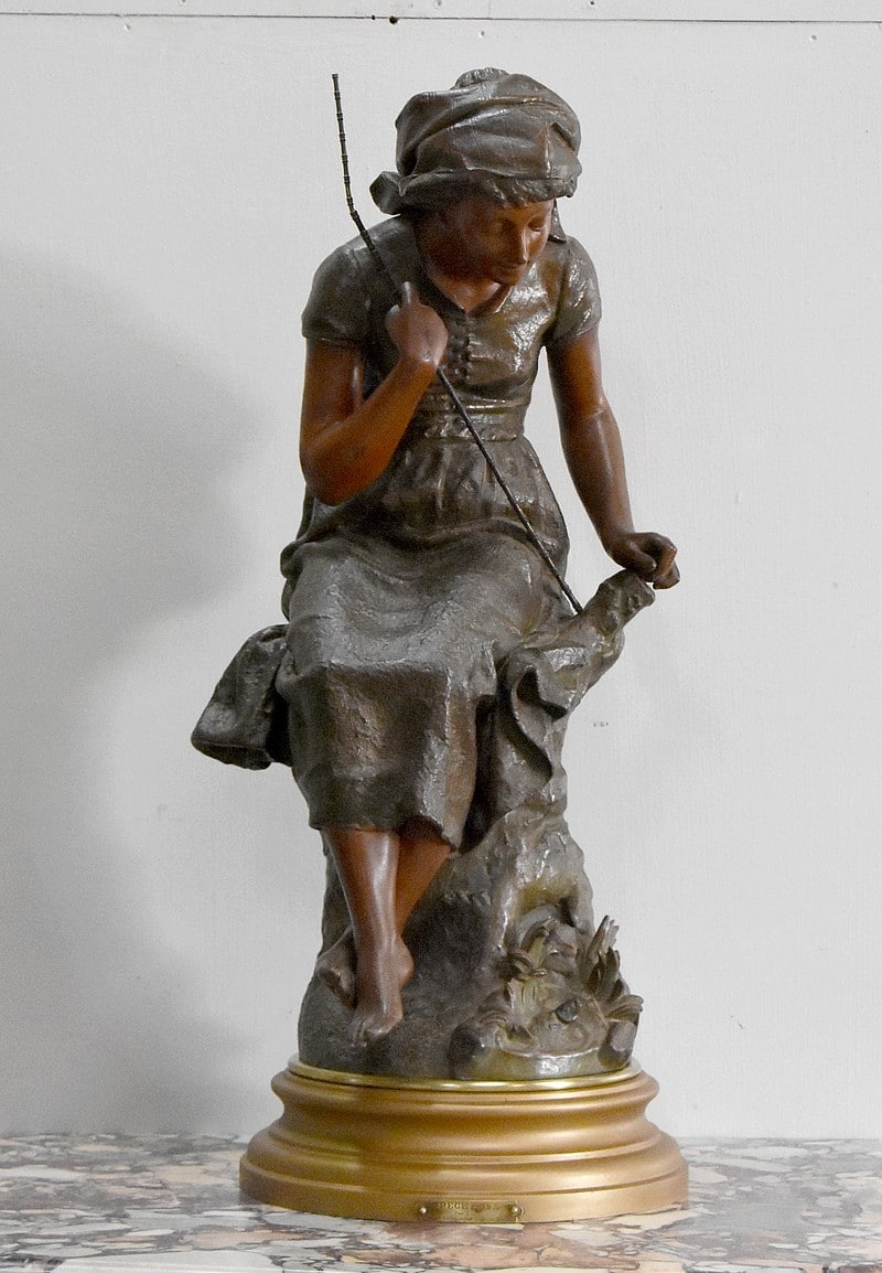 Régule nommé ‘La pêcheuse’ et signé Ernest Justin FERRAND (1846-1932).